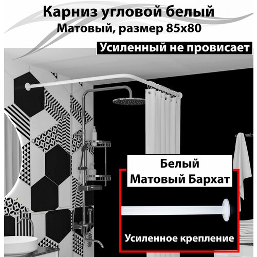Купить Карниз для душа, поддона 85×80см Г-образный, угловой Усиленный Люкс, цельнометаллический белого цвета с доставкой по всей России. Карниз для душа, поддона 85×80см Г-образный, угловой Усиленный Люкс, цельнометаллический белого цвета: сравнение цен, характеристики, фото, актуальное наличие и цены.