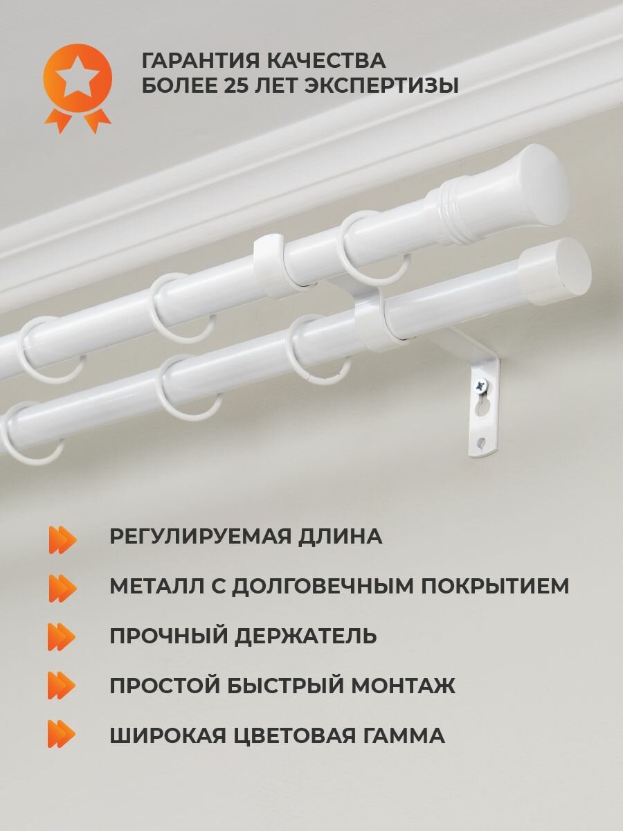 Карниз для штор раздвижной телескопический двухрядный (2 ряда) металлический 160 — 300 см Трапеция белый ARTTEX: сравнение цен, характеристики, фото, актуальное наличие и цены.