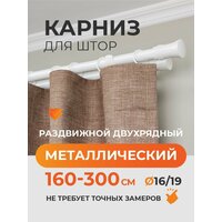 Купить Карниз для штор раздвижной телескопический двухрядный (2 ряда) металлический 160 — 300 см Трапеция белый ARTTEX с доставкой по всей России.