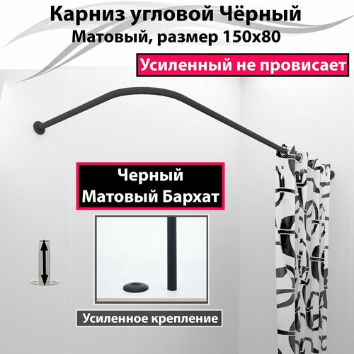 Карниз для ванной 150×80см Г-образный, угловой Усиленный Люкс, цельнометаллический черного цвета: сравнение цен, характеристики, фото, актуальное наличие и цены.