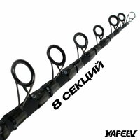 Тест удилища варьируется от 150 до 300 грамм, что гарантирует успешную ловлю рыбы различных размеров и видов. Секция удилища состоит из 8 частей, что позволяет быстро и легко регулировать его длину. Быстрый строй удилища обеспечивает высокую чувствительность и точность заброса.