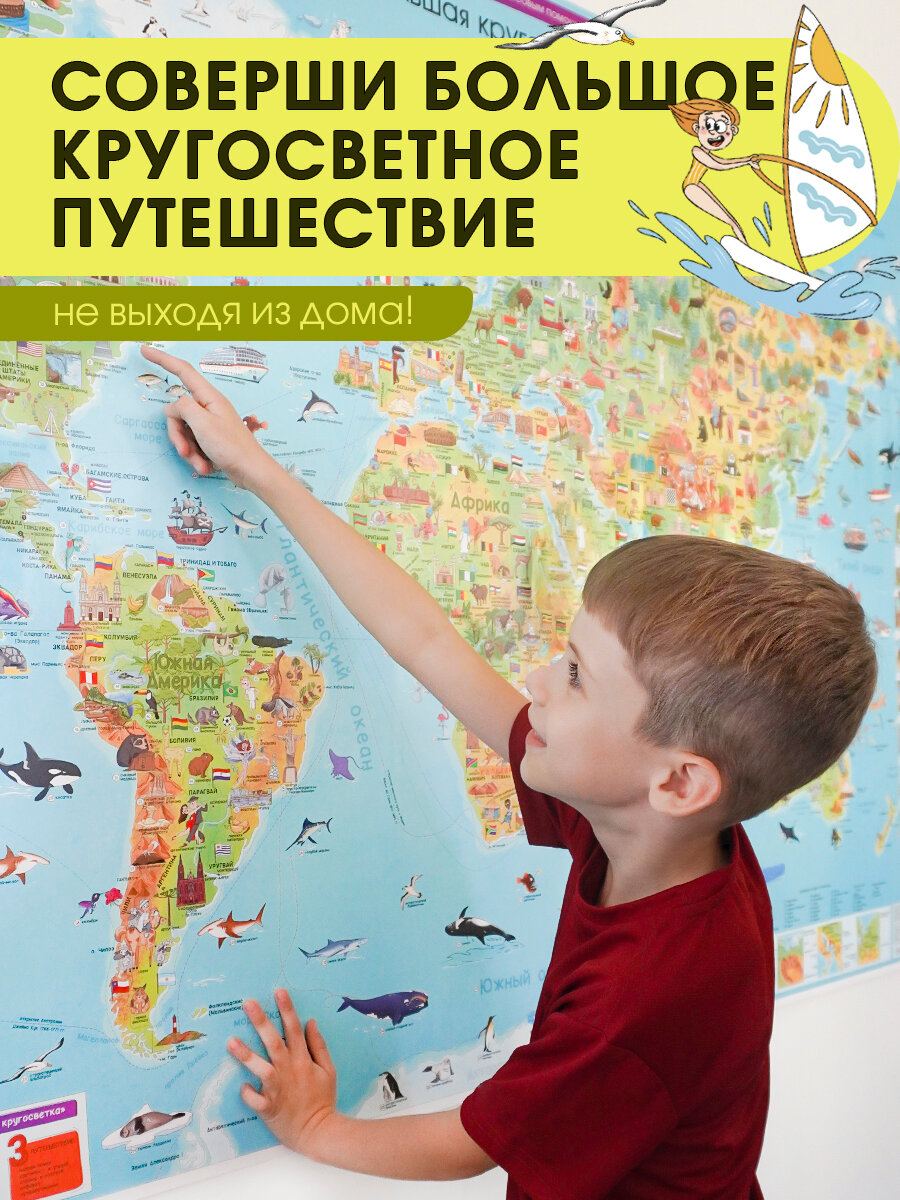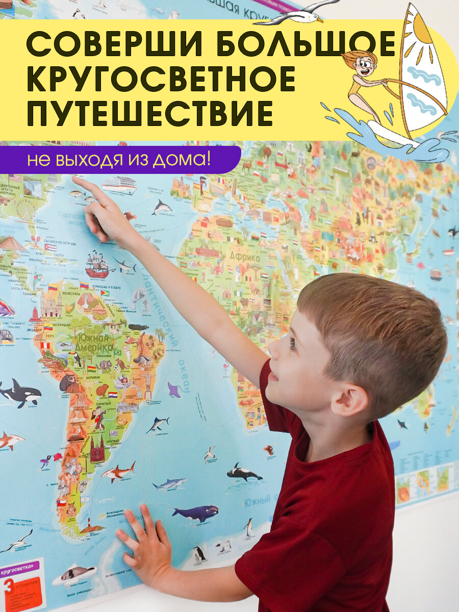Карта 157х107 см. Карта для детей. Большая кругосветка. ЛАМ. Настенная в тубусе. ПРОкарта: сравнение цен, характеристики, фото, актуальное наличие и цены.