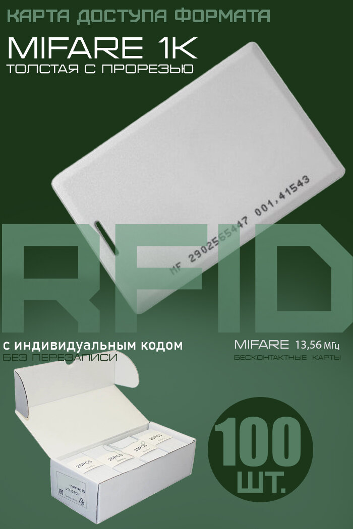 Карта доступа толстая с индивидуальным кодом формата Mifare 1К 13.56 МГц (100 штук/упаковка): сравнение цен, характеристики, фото, актуальное наличие и цены.