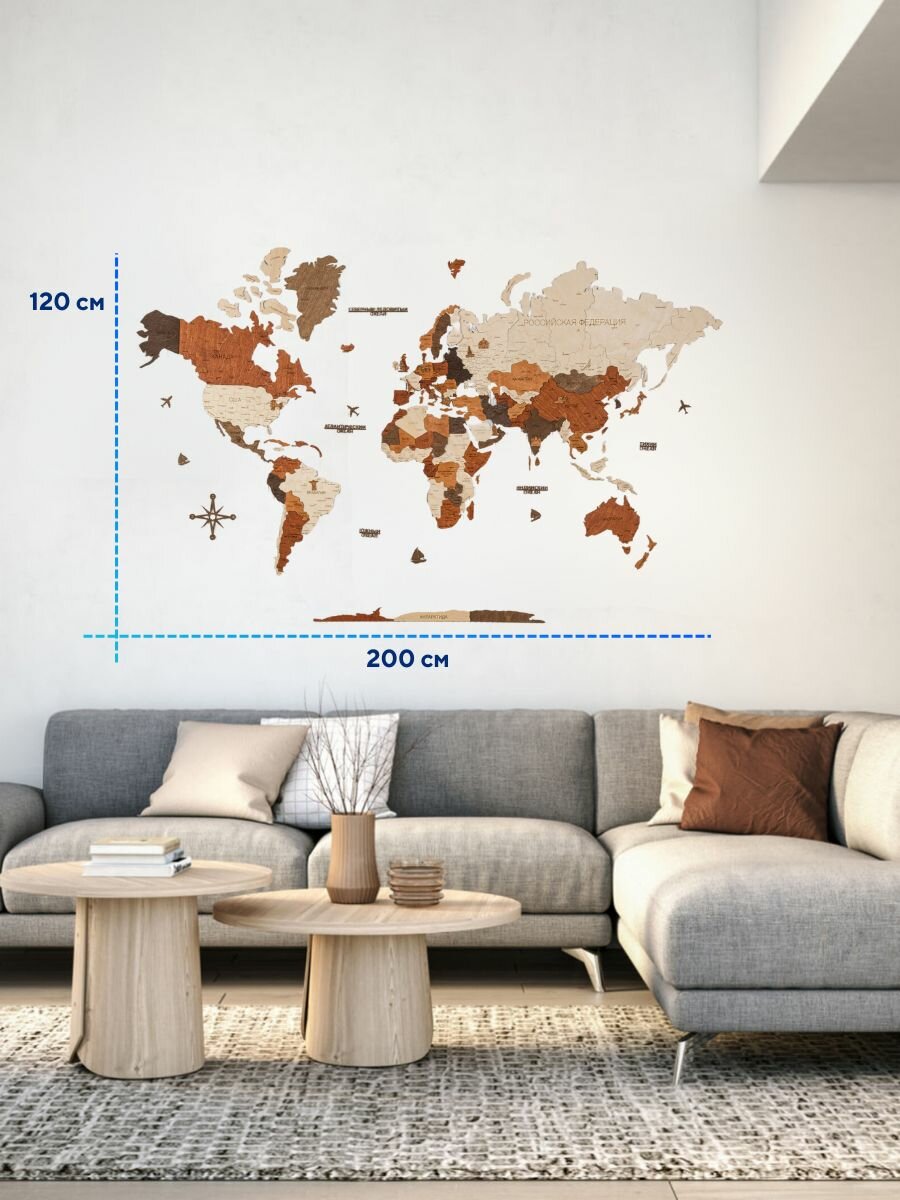 Купить Карта мира из дерева настенная 200×120 см с доставкой по всей России.