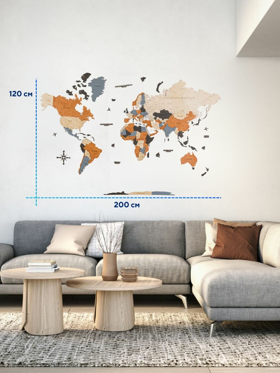 Купить Карта мира из дерева настенная 200×120 см с доставкой по всей России.