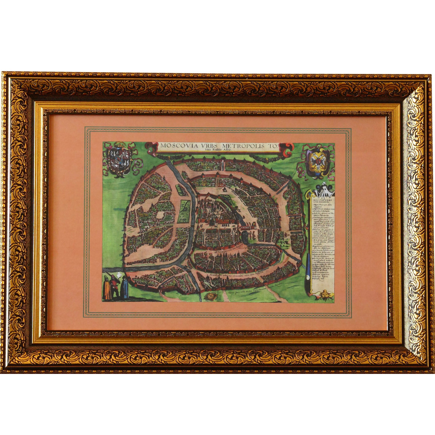 Купить Карта Москвы старинная, 1610 г, интерьерная карта старинная, картина в раме, 84х64 см с доставкой по всей России.