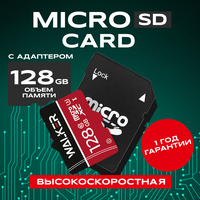 Карта памяти 128 гб, WALKER, с адаптером // sd карта 128 гб, карта памяти microsd, microsd, sd карта, microsd 128, sandisk, карты памяти
