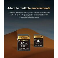 Карта памяти серии Catalyst создана для путешествий. Благодаря стабильной работе в различных температурных условиях это отличный вариант как для пустыни, так и северных видов. Отличные показатели скорости обеспечат поддержку больших форматов для кино и не только Карта выдерживает воздействие пыли, влаги и ударов, а также рентгеновских лучей и магнитных полей. В. Комплектация, карта памяти Гарантия, 5 года Бренд, Exascend Интерфейс, UHS-II Вид накопителя, SDXC Объём памяти, 128 Гб Скорость чтения, 300 мб/с Скорость записи, 280 мб/с Класс скорости UHS, U3 Класс скорости записи видео, V90 Класс скорости, C10 Габариты упаковки товара (Г х Ш х В), 2 × 8 × 14 см Артикул производителя, EX128GSDU2 Штрихкод, 6972904951136 Температурный диапазон, от -25 до 85°C Вес, 27 г