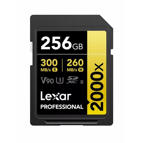 Карта памяти Professional 2000x UHS-II SDXC емкостью 256 ГБ от Lexar имеет емкость 256 ГБ и использует преимущества шины UHS-II для поддержки расширенных функций цифровых зеркальных камер, таких как непрерывная серия затворов и быстрая съемка, а также съемки в формате RAW и JPEG. Эта карта также хорошо подходит для захвата видео, включая видео в форматах 4K, 3D и Full HD, и может достигать максимальной скорости чтения до 300 МБ/с и максимальной скорости записи до 260 МБ/с. Благодаря классу скорости V90 минимальная скорость записи гарантированно не опускается ниже 90 МБ/с, что делает его пригодным для использования с камерами Blackmagic Pocket 6K G2 и Ursa G2.