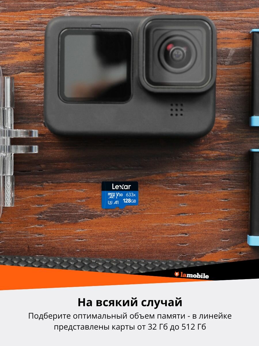 Lexar High-Performance 633x microSDXC 256 Гб совместима с различными устройствами, включая смартфоны, планшеты и экшн-камеры.