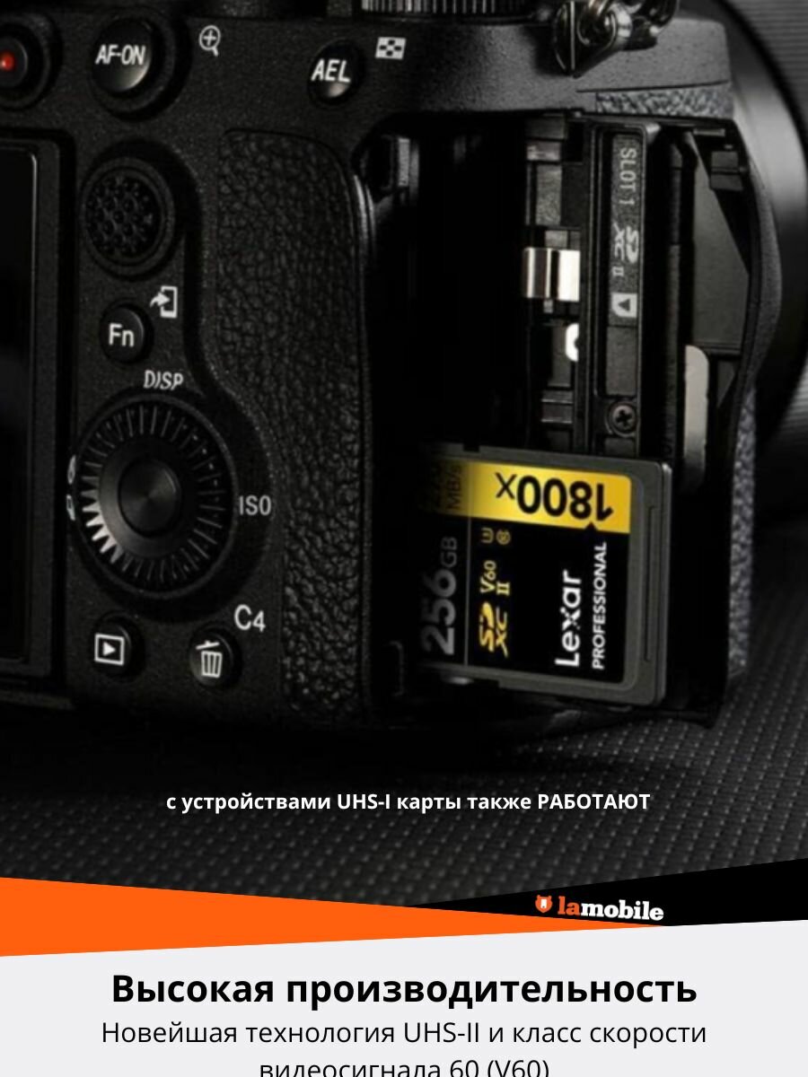 Карты памяти Lexar Professional 1800x SDXC UHS-II серии GOLD, предназначенные для цифровых зеркальных или беззеркальных камер, позволяют быстро снимать и передавать высококачественные фотографии и потрясающее видео в формате Full HD и 4K со скоростью чтения до 280 МБ/с. Благодаря новейшей технологии UHS-II и классу скорости видеосигнала 60 (V60) эта карта значительно ускоряет ваш рабочий процесс. Карты памяти Lexar Professional 1800x SDXC UHS-II серии GOLD обеспечивают сверхбыструю скорость чтения до 280 МБ / с для ускорения процесса постпродакшна, экономя ваше время и возвращая вас к занятиям фотографией