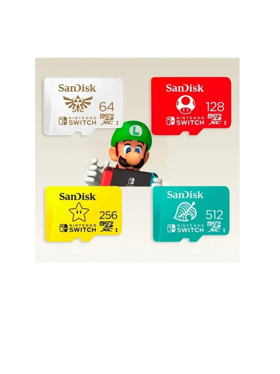 Официально лицензированная карта SanDisk microSDXC™ для системы Ninte ndo Switch™ обеспечивает невероятную скорость и позволяет добавить в систему до 1Тб. Тратьте меньше времени на ожидание и больше времени на игры благодаря скоростям чтения и записи до 100 МБ/с и 90 МБ/с соответственно.