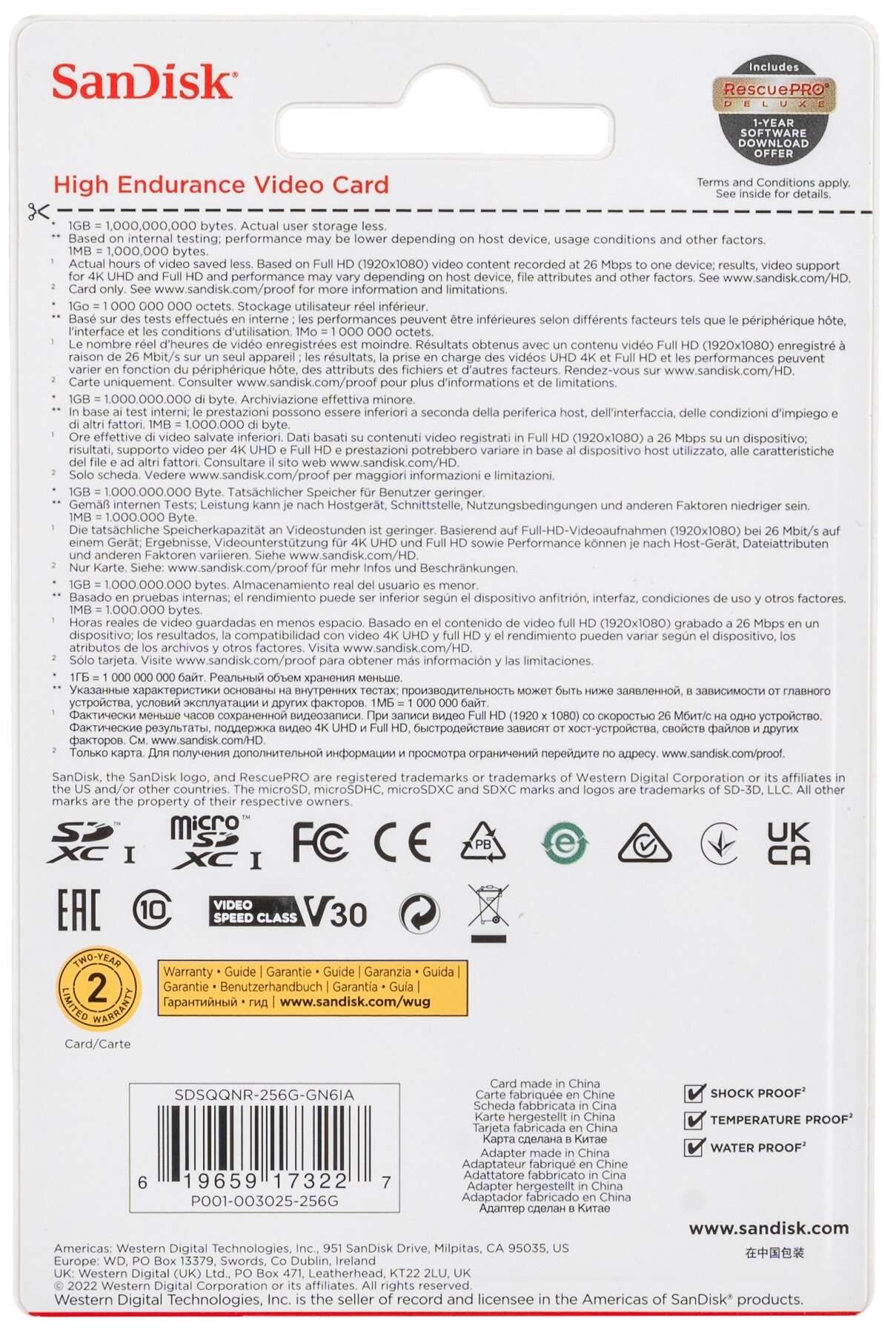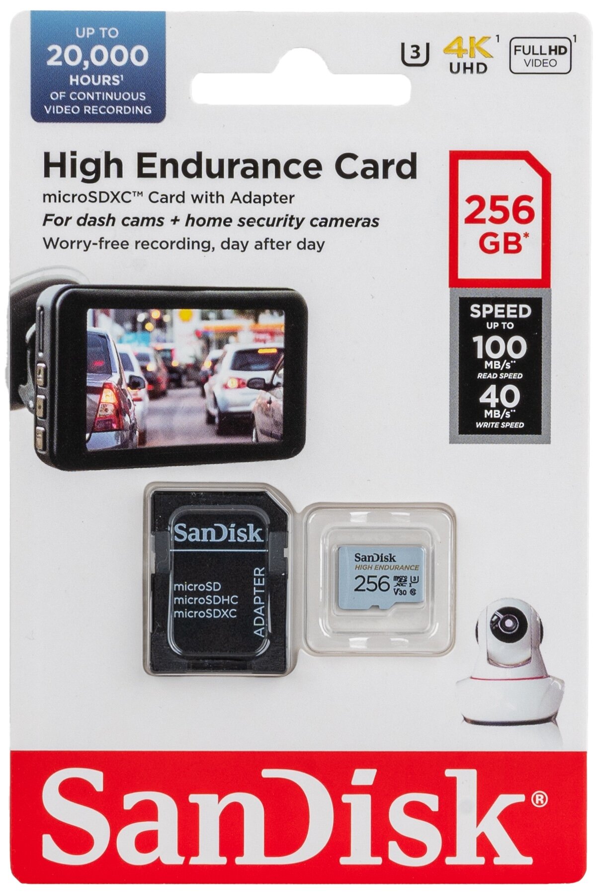 Карта памяти SanDisk MicroSDXC 256 ГБ High Endurance Video Monitoring Card UHS-I U3 V30 (100 Mb/s) Class 10 + SD адаптер: сравнение цен, характеристики, фото, актуальное наличие и цены.