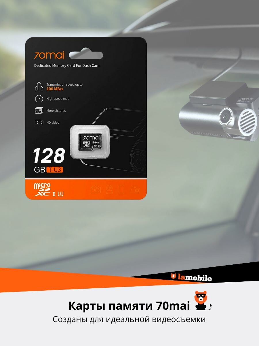 Вариант 128G подходит для использования со следующими видеорегистраторами линейки 70mai: Dash Cam M300, Dash Cam A400 и Dash Cam A800s.