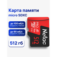 Купить Карта памяти Netac P500 Extreme Pro, microSDXC, 512 ГБ, Class 10, A1, V30, UHS-I U3, 1 шт. (NT02P500PRO-512G-S) с доставкой по всей России.
