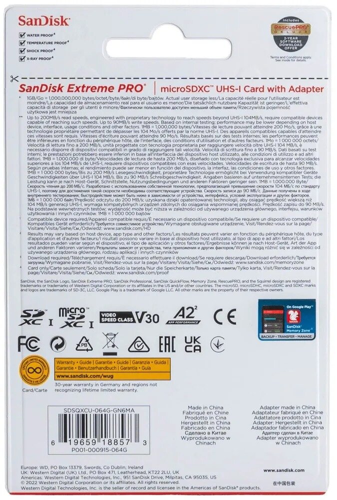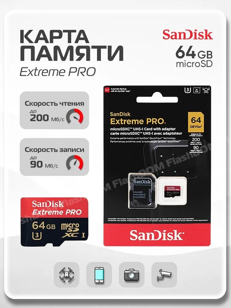 Купить Карта памяти SanDisk Extreme Pro, 64ГБ, MicroSD, UHS-I, V30 с доставкой по всей России. Карта памяти SanDisk Extreme Pro, 64ГБ, MicroSD, UHS-I, V30: сравнение цен, характеристики, фото, актуальное наличие и цены.
