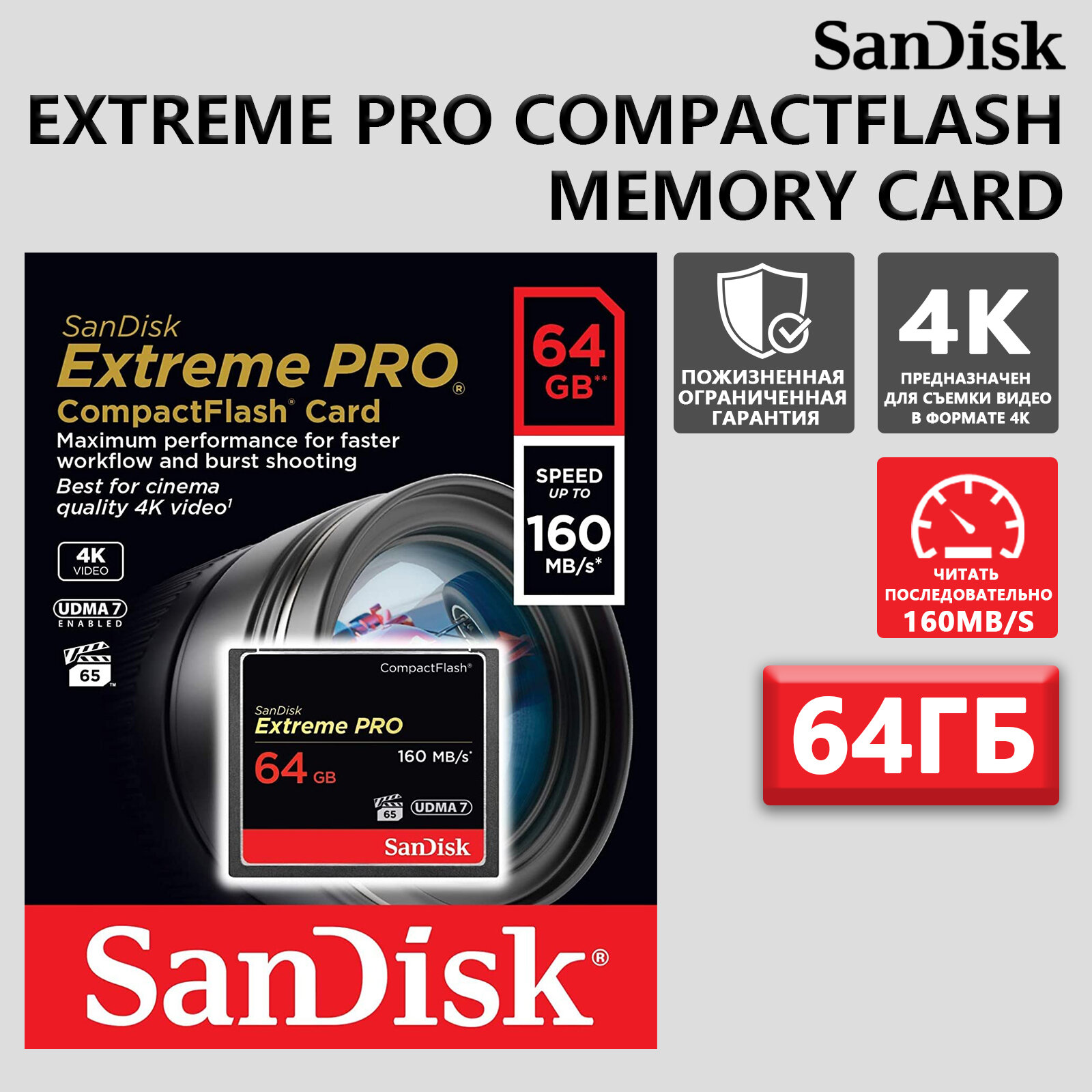 Карта памяти SanDisk Extreme Pro CompactFlash для цифровых зеркальных фотокамер, 160 МБ/с, 64 ГБ: сравнение цен, характеристики, фото, актуальное наличие и цены.