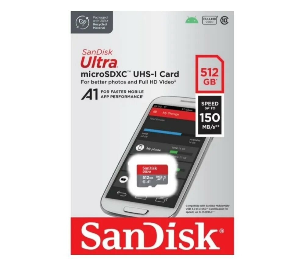 Карта памяти SanDisk MicroSDXC 512GB Ultra является отличным выбором для тех, кто ищет надежное устройство для хранения данных на своем телефоне, планшете, ноутбуке и других устройствах. Micro sdxc предоставляет огромный объем памяти, который позволяет сохранять сотни фотографий, видео, игр и других файлов без проблем с пространством. Флешка MicroSDXC Ultra имеет емкость 512 ГБ, что является одной из самых высоких емкостей карт памяти на рынке. Гигантский объем носителя позволяет хранить огромное количество файлов и приложений, не беспокоясь о том, что память закончится. Эта карта идеально подойдет для steam deck. Благодаря ей игры воспроизводятся стабильно и без задержек. SDXC карта имеет класс скорости A1. Это обеспечивает высокую скорость чтения и записи данных, что позволяет загружать картинки, музыку, видео в Full HD или игры максимально быстро. Скорость передачи данных на микро сд SanDisk достигает 100 Мб/с, что дает возможность быстро загружать тяжелые файлы, а также легко переносить данные между устройствами. Если вы ищете надежное и универсальное решение для хранения данных на вашем устройстве, то карта памяти SanDisk MicroSDXC 512GB Ultra является отличным выбором. Она обладает большой емкостью в 512 Gb, высокой скоростью чтения и записи данных, а также надежной защитой от повреждений файлов. Модель SDSQUNR-512G-GN3MN Серия Ultra Тип Secure Digital Подтип microSDXC Емкость 512 Классификация по скорости записи Class 10 Класс скорости UHS-I U1 Бренд SANDISK PartNumber/Артикул Производителя SDSQUNR-512G-GN3MN Кол-во шт. в упаковке 1 Скорость чтения, макс. 100