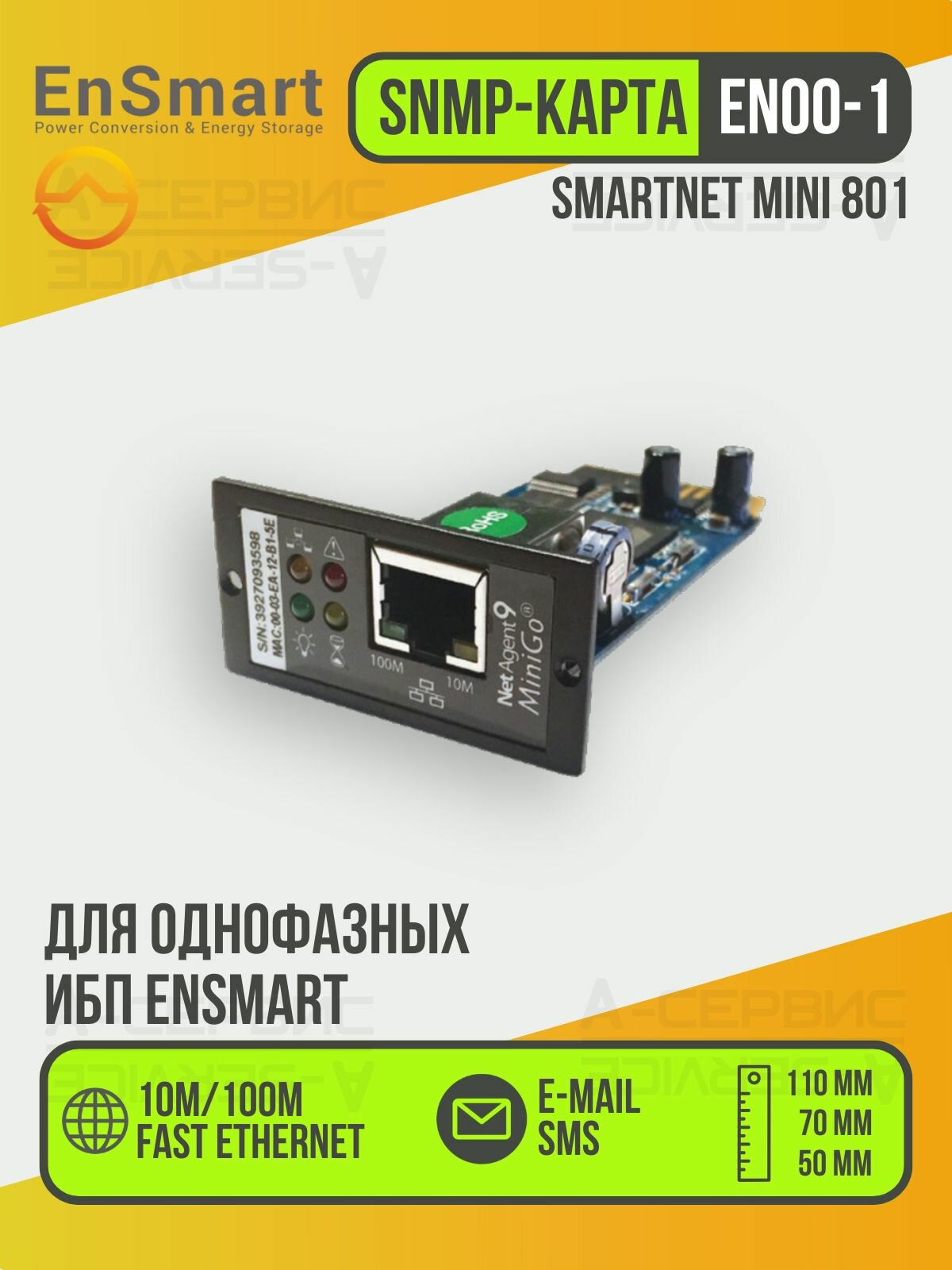 Карта сетевого управления и мониторинга для однофазных ИБП EnSmart SmartNET Mini 801 ENS-EN00-1 / Электронный модуль удаленного анализа / Управление через Telnet, браузер, NMS (Аксессуар для ИБП): сравнение цен, характеристики, фото, актуальное наличие и цены.