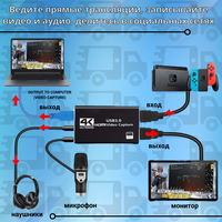 USB 3.0 2.0 захват карты можно записать 4K видео ULTRA HD аудио и видео и сохранить его на компьютер или смартфон для предварительного просмотра и хранения в full HD