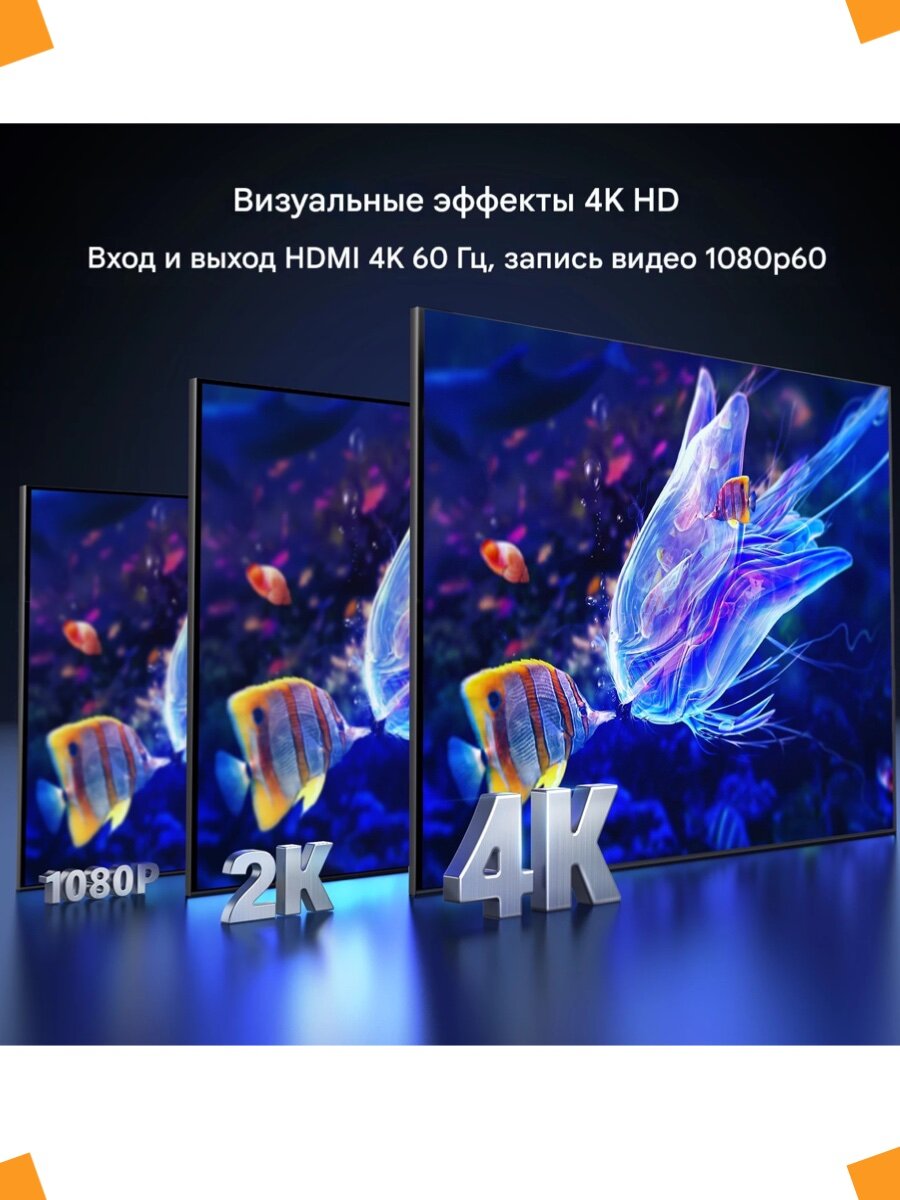- Plug and Play: с Plug and Play пользователи могут просто подключать свои устройства без необходимости в дополнительном программном обеспечении или драйверах. Используйте интерфейс USB 3.0, оснащенный кабелями USB C или USB A, это более удобно и быстро для записи и захвата на USB C и USB A телефонах, планшетах, ноутбуках. Подходит для потокового мультимедиа, видеоконференций, игр и других сценариев использования