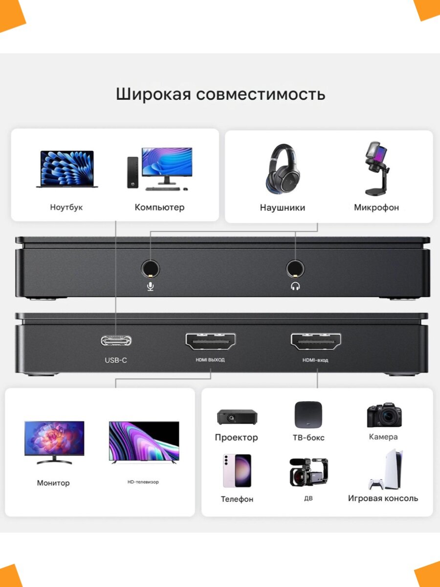 - Совместимость с различными системами: устройство захвата видео имеет широкую совместимость и совместимо с системами Windows, Mac OS, Linux, iOS17 и Android. Легко записывать и транслировать видео с Nintendo Switch/PS4/PS5/Xbox Series X/Meta Quest 3/2 на iPad/ноутбук/ПК. Карта захвата подходит для потоковой передачи в реальном времени, записи, редактирования и передачи видео высокого разрешения на OBS, XSplit, Potplayer и т. д.