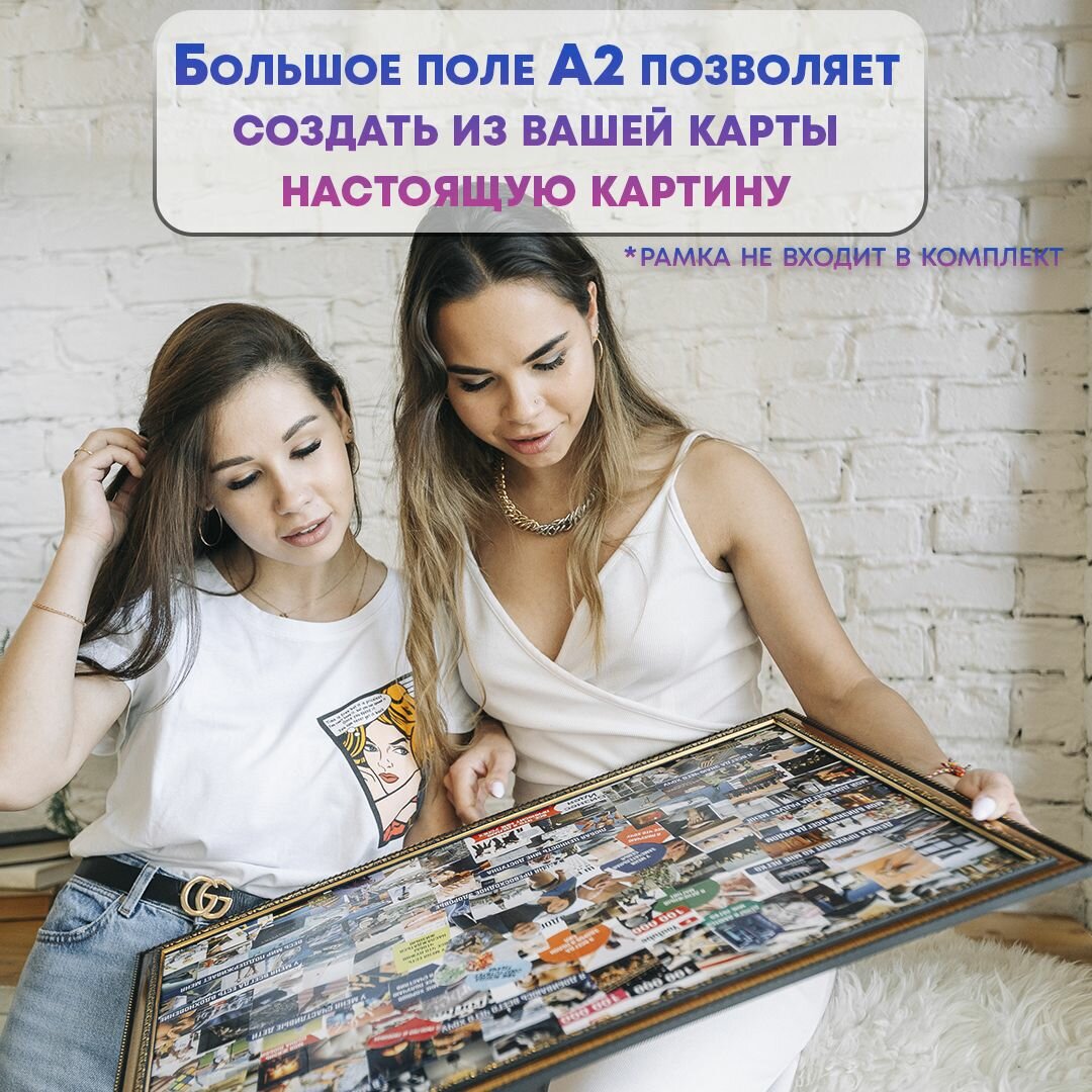 | Дополнительная информация | Карта Желаний Премиум женская для создания своей доски визуализации. Этот вариант отлично подходит чтобы сделать в 2023, 2024 и 2025 году. Рекомендация 1000 наших клиентов. Преимущества такой карты желаний это большой выбор картинок наклеек. Все стикеры яркие и для удобства есть также цитаты аффирмации, которые служат дополнение для вашей карты. К набору добавлена свеча, которая помогает настроится на мечты, а аромат для дома расслабляет и помогает заняться саморазвитием. Данный набор создан по рекомендациям психологов, астрологов, тарологов и специалистов в области фен-шуй. |