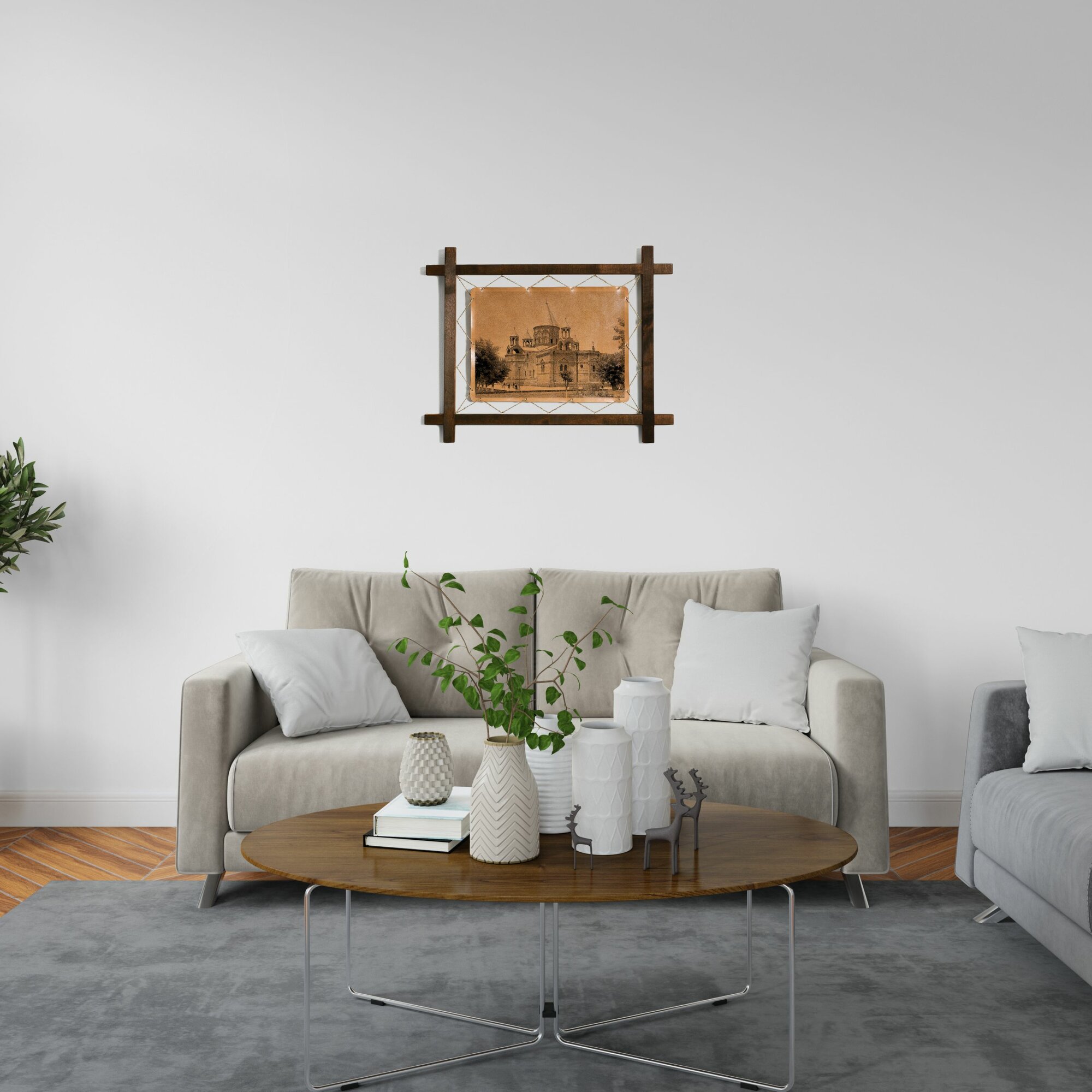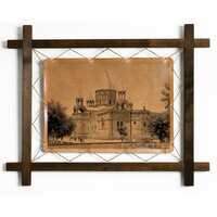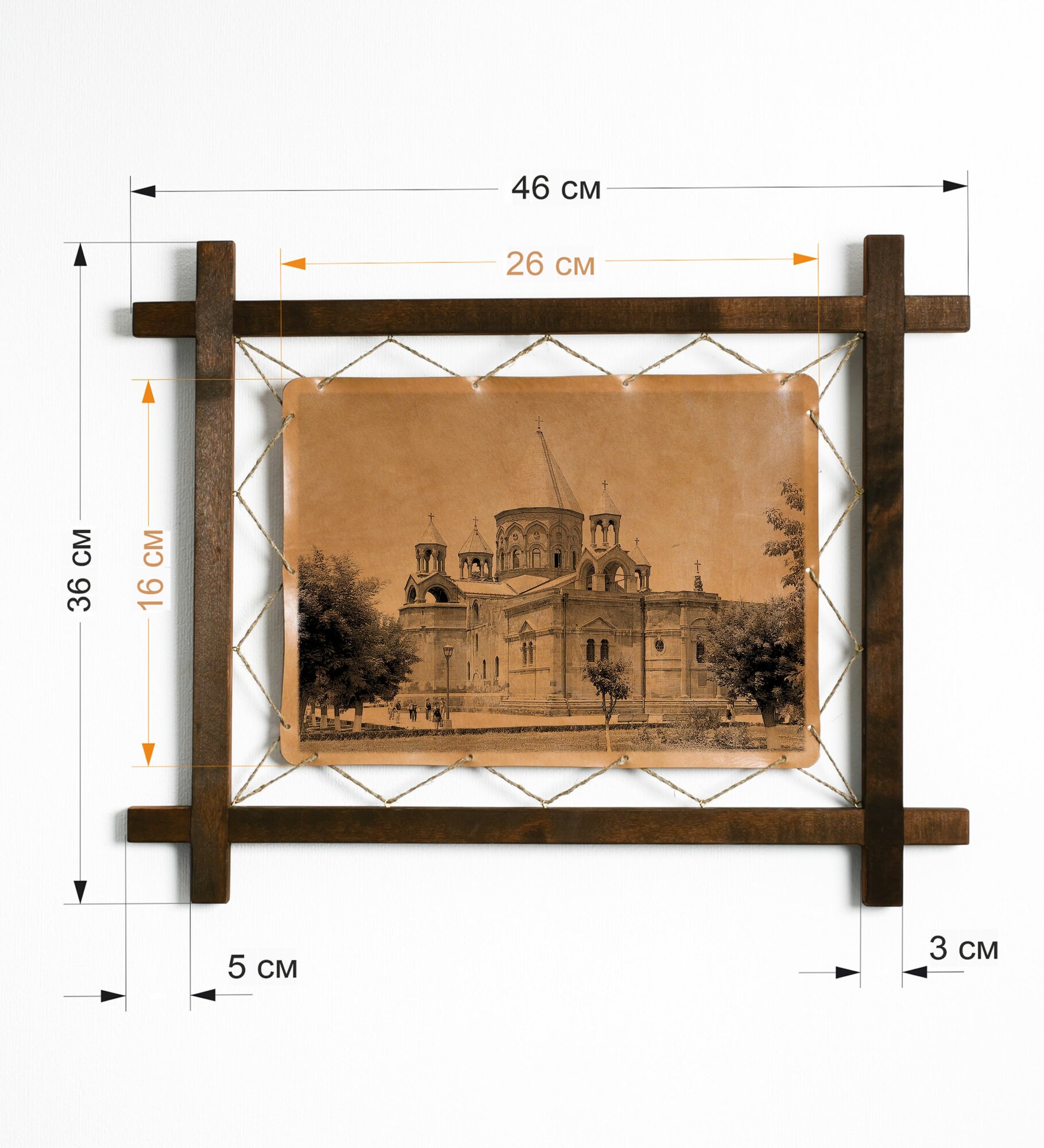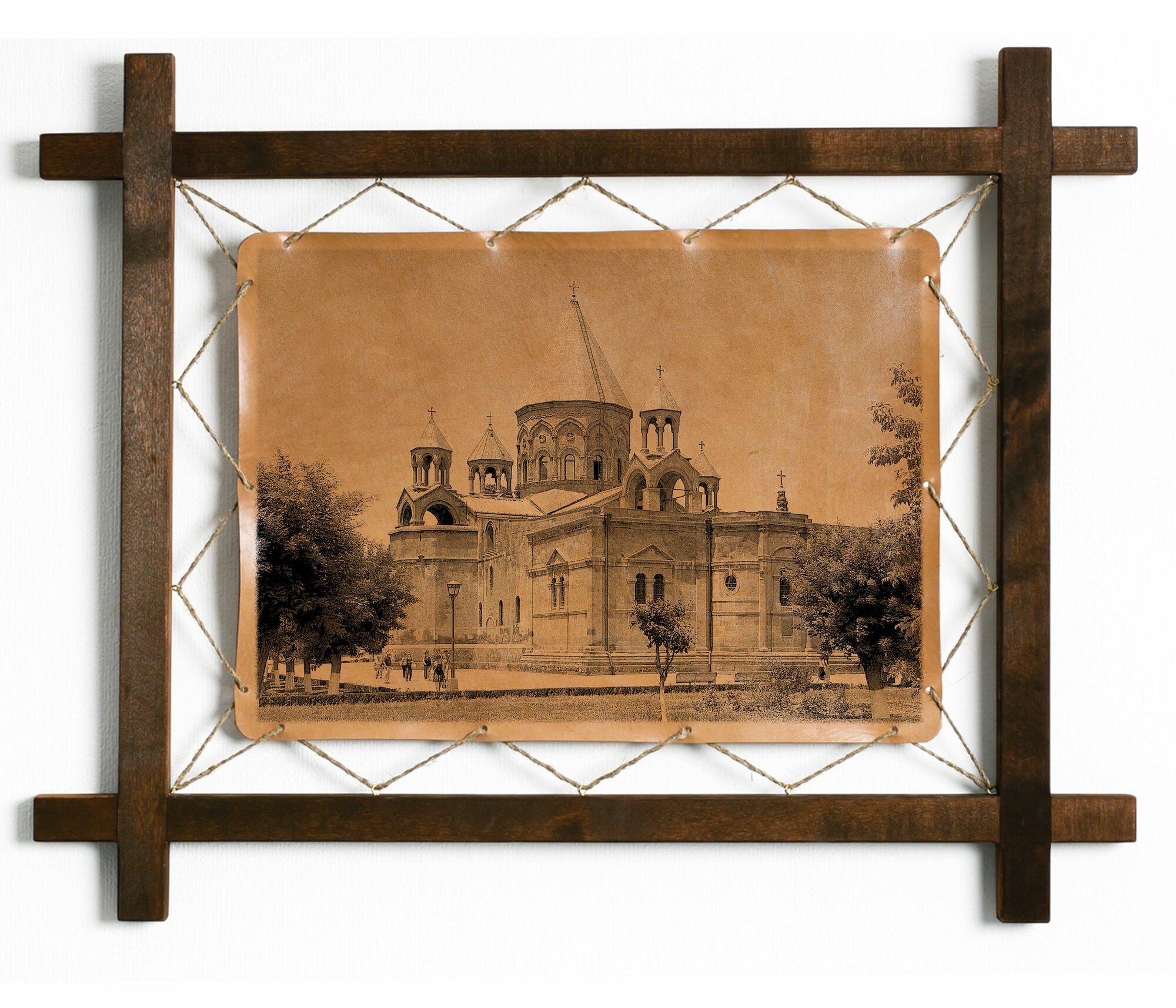 Картина «Эчмиадзинский монастырь, Армения», гравировка на натуральной коже, интерьерная для украшения и декора на стену в деревянной раме, подарок, BoomGift