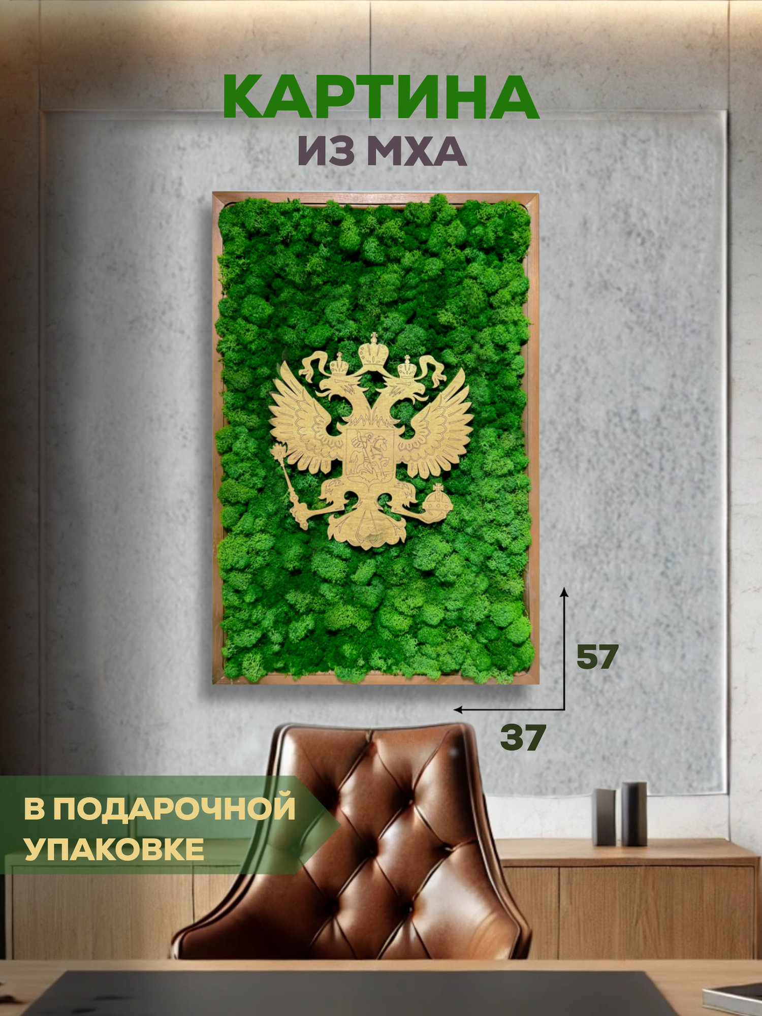 Картина «Герб России», стабилизированный мох, ручная работа, в деревянной раме, 38×59 см: сравнение цен, характеристики, фото, актуальное наличие и цены.