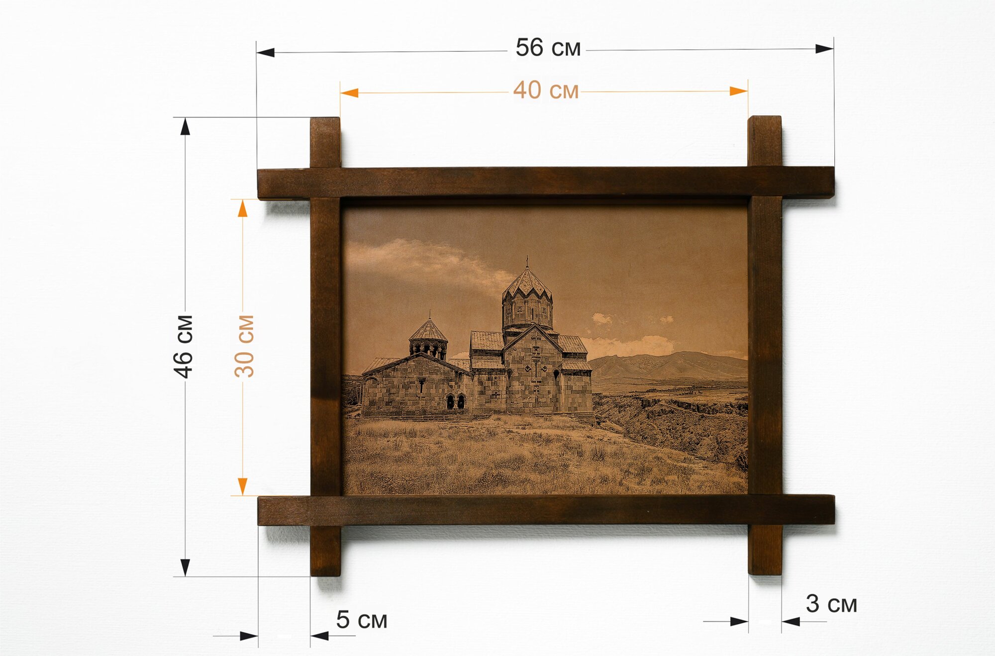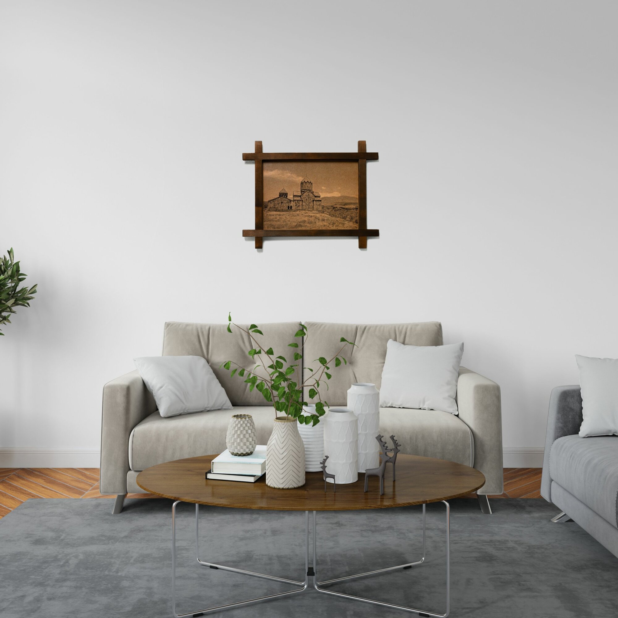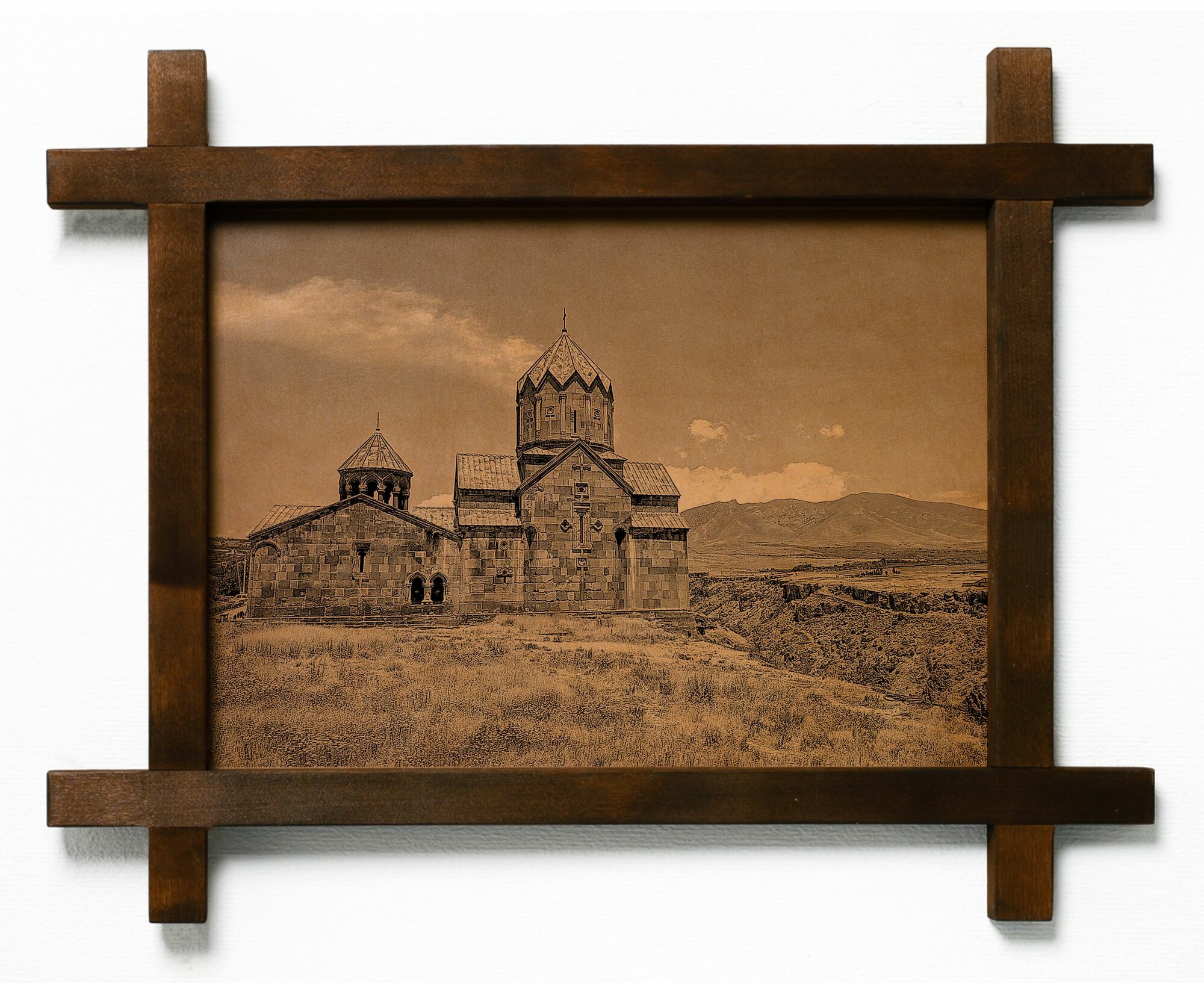 Картина «Монастырь Ованаванк, Армения», гравировка на натуральной коже, интерьерная для украшения и декора на стену в деревянной раме, подарок, BoomGift