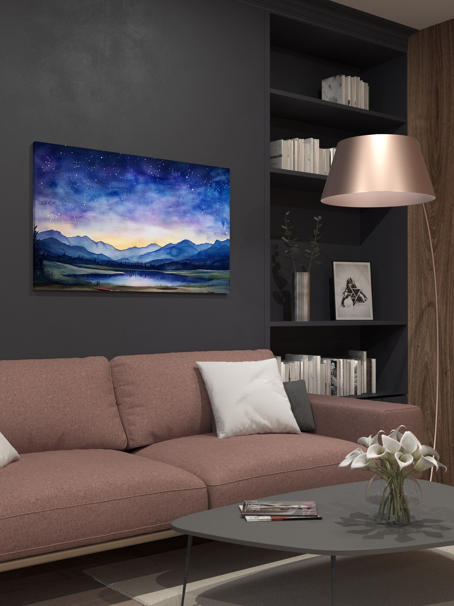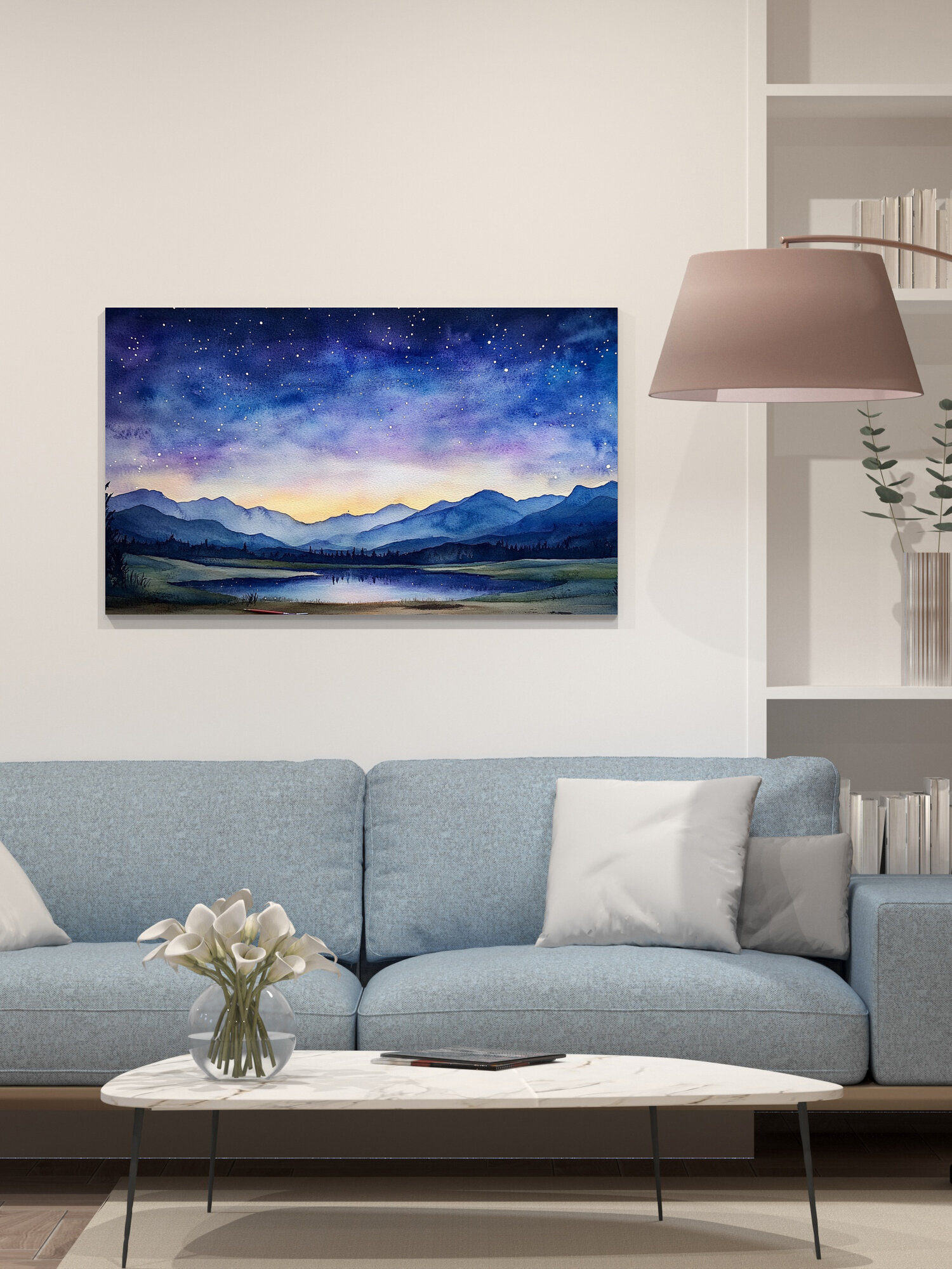 Картина на холсте интерьерная 100х60 см, акварель, картина, звездное ночное небо, глубокий синий, пурпурный, магия: сравнение цен, характеристики, фото, актуальное наличие и цены.