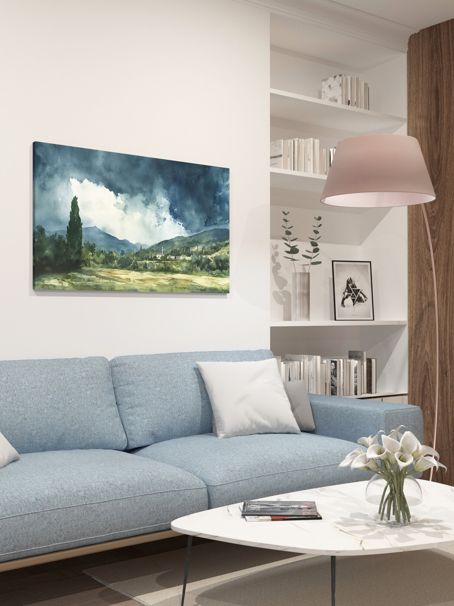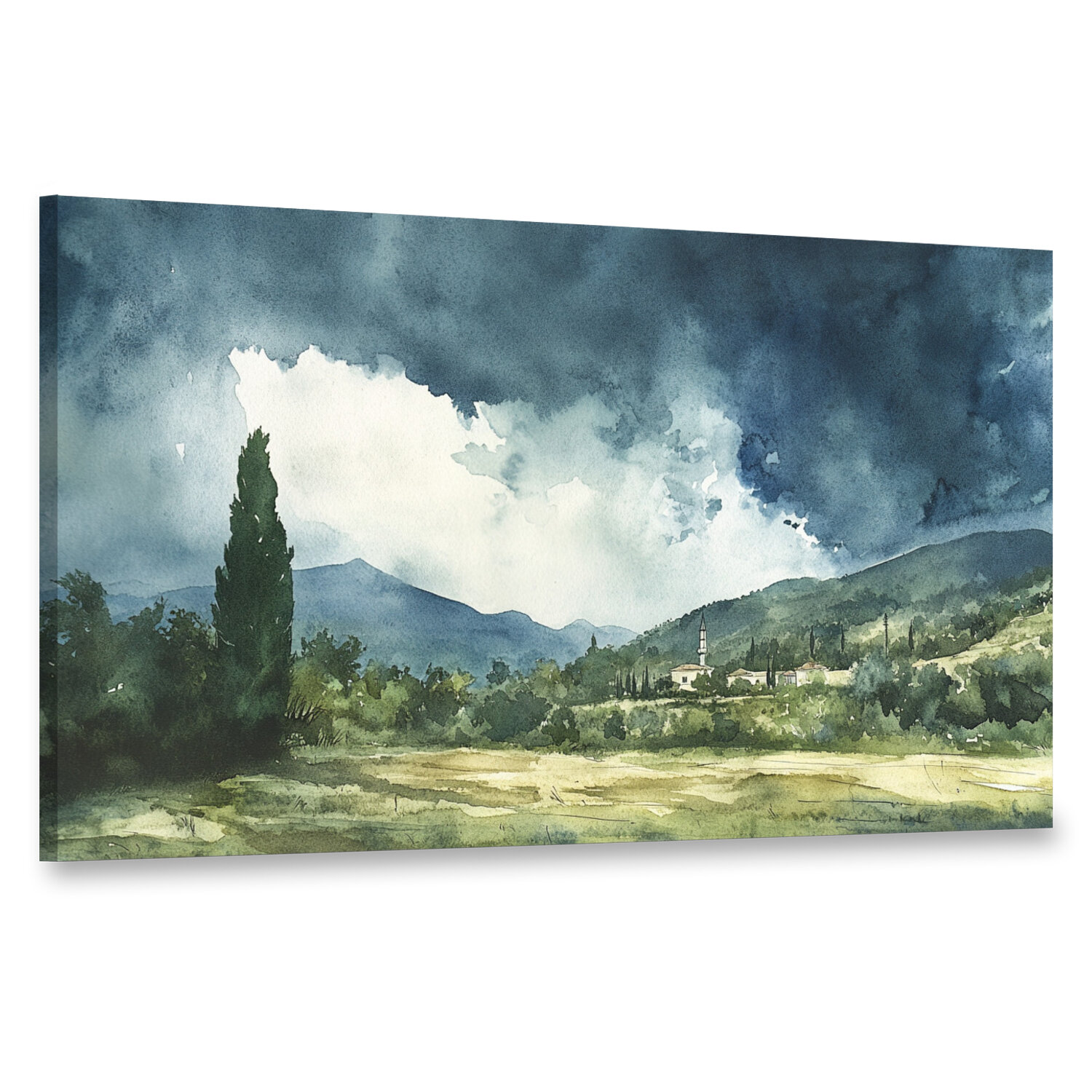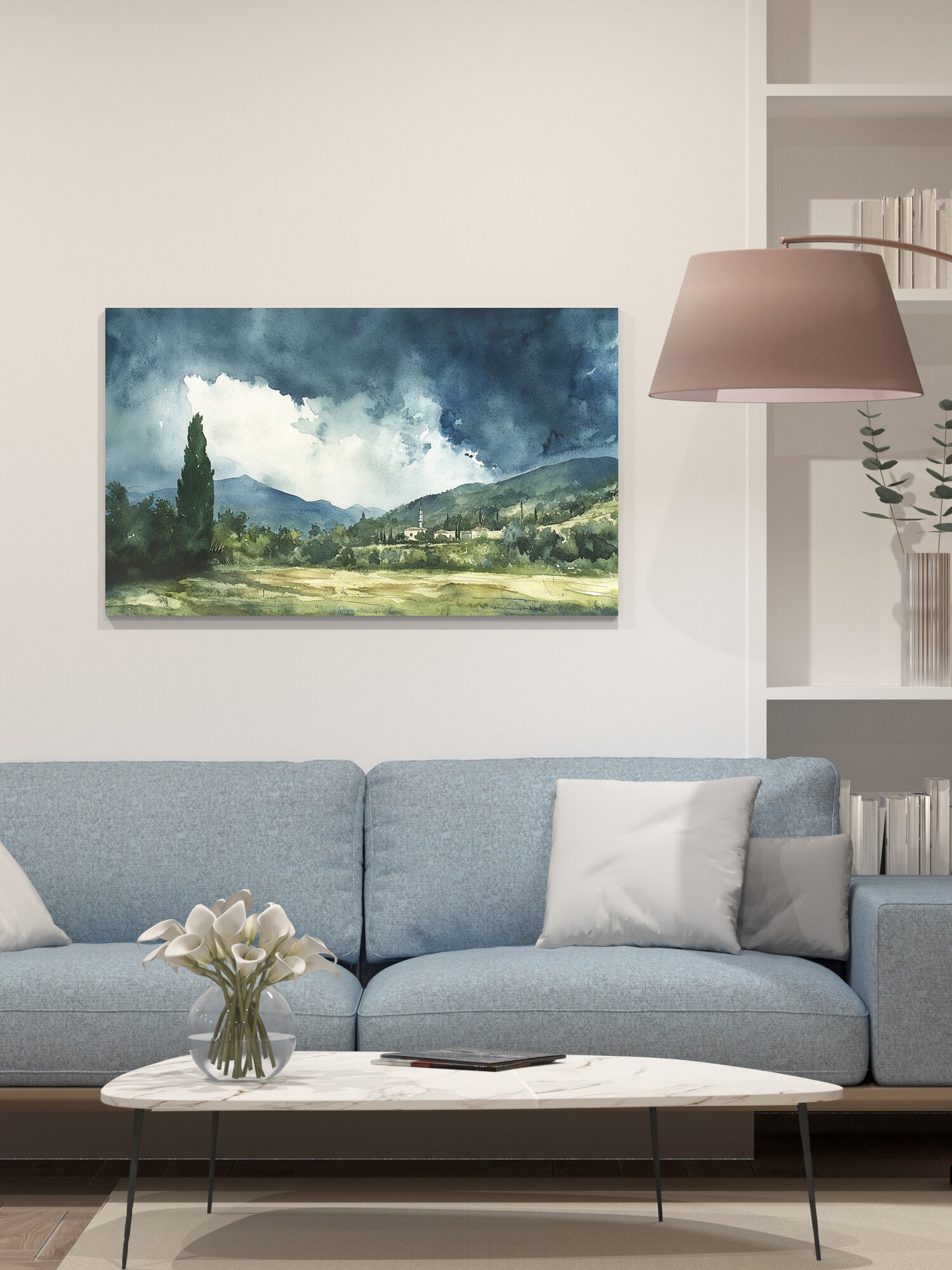Купить Картина на холсте интерьерная 100х60 см, акварель, Турция, гроза, сельская местность, контраст, небо, пейзаж, оттенки с доставкой по всей России.