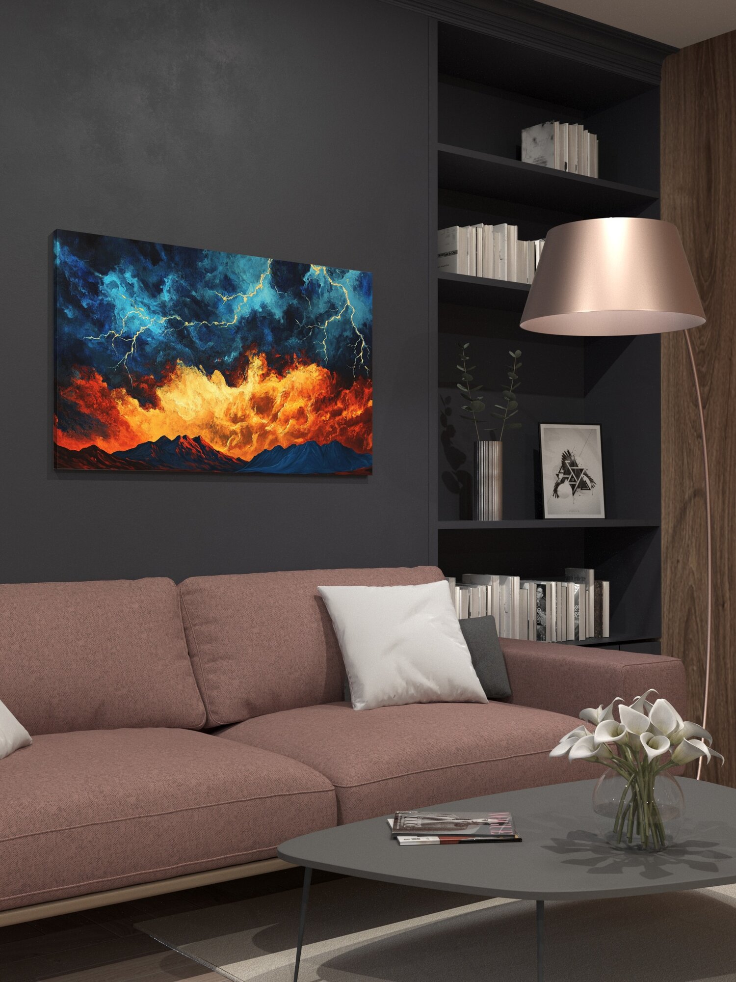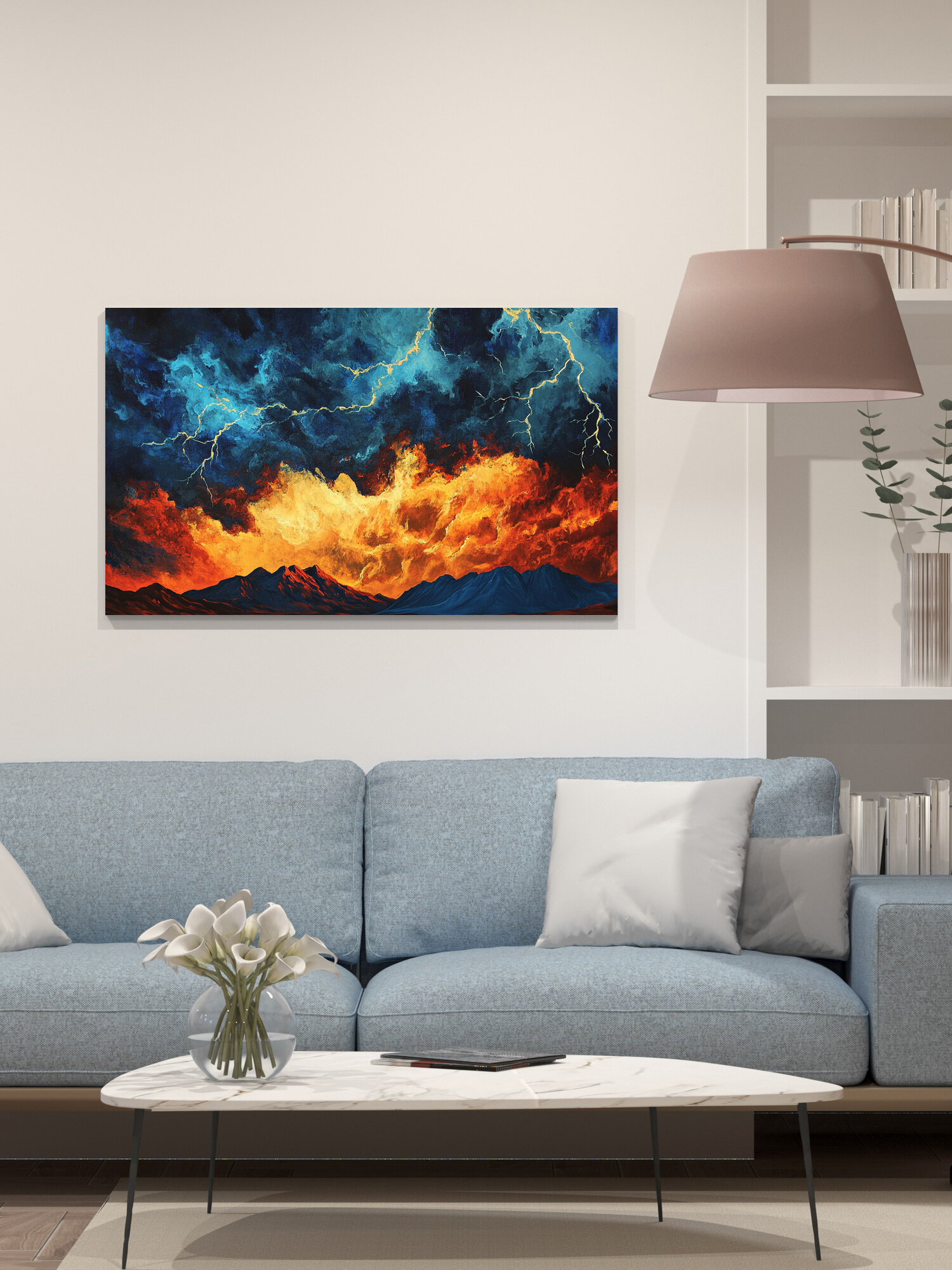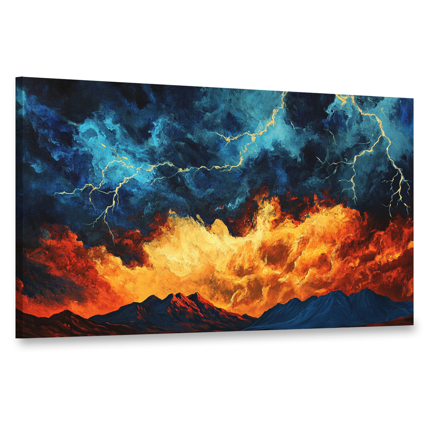 Купить Картина на холсте интерьерная 100х60 см, гроза, горный хребет, молнии, электрические разряды, небо, энергия природы с доставкой по всей России.