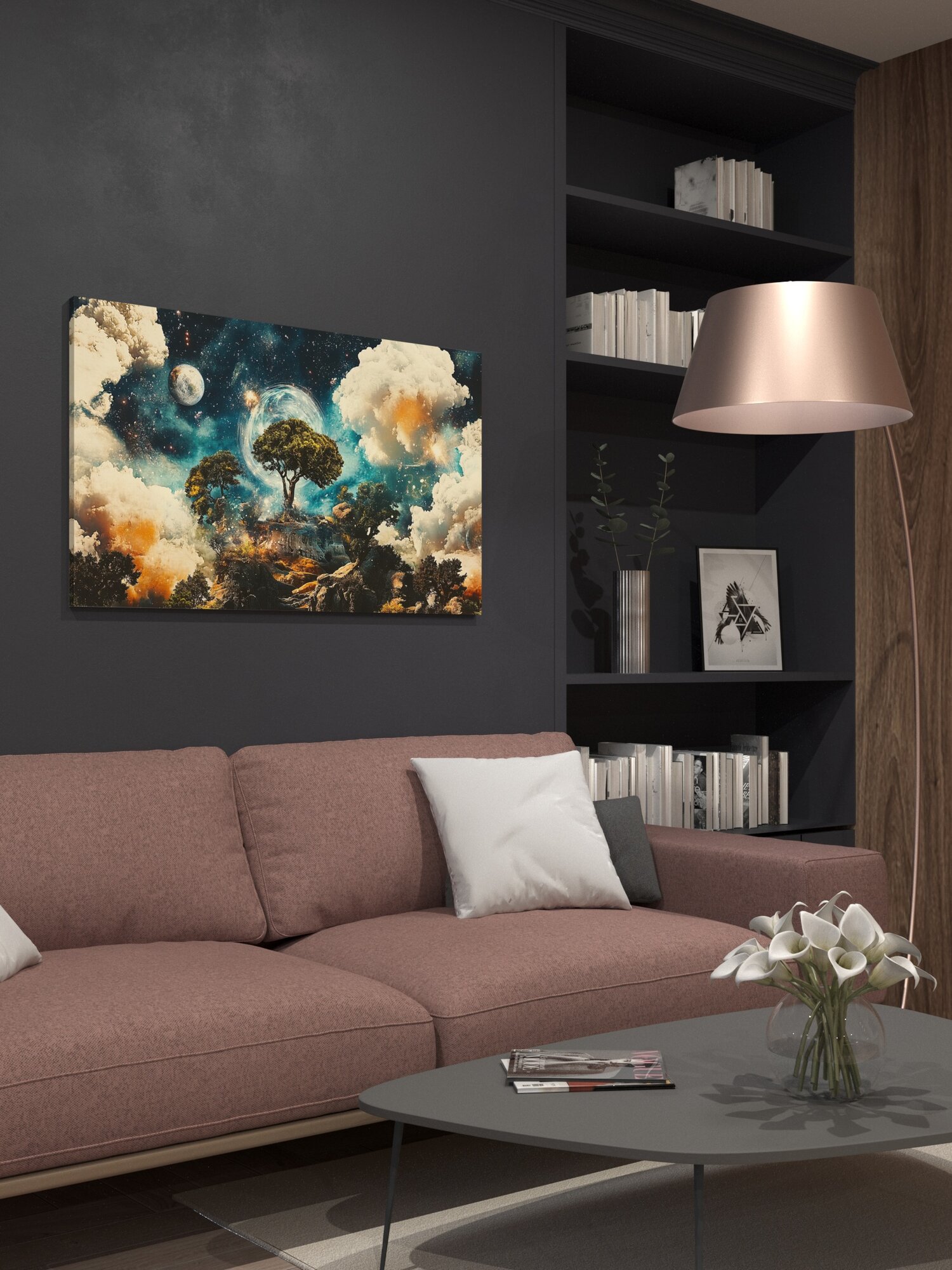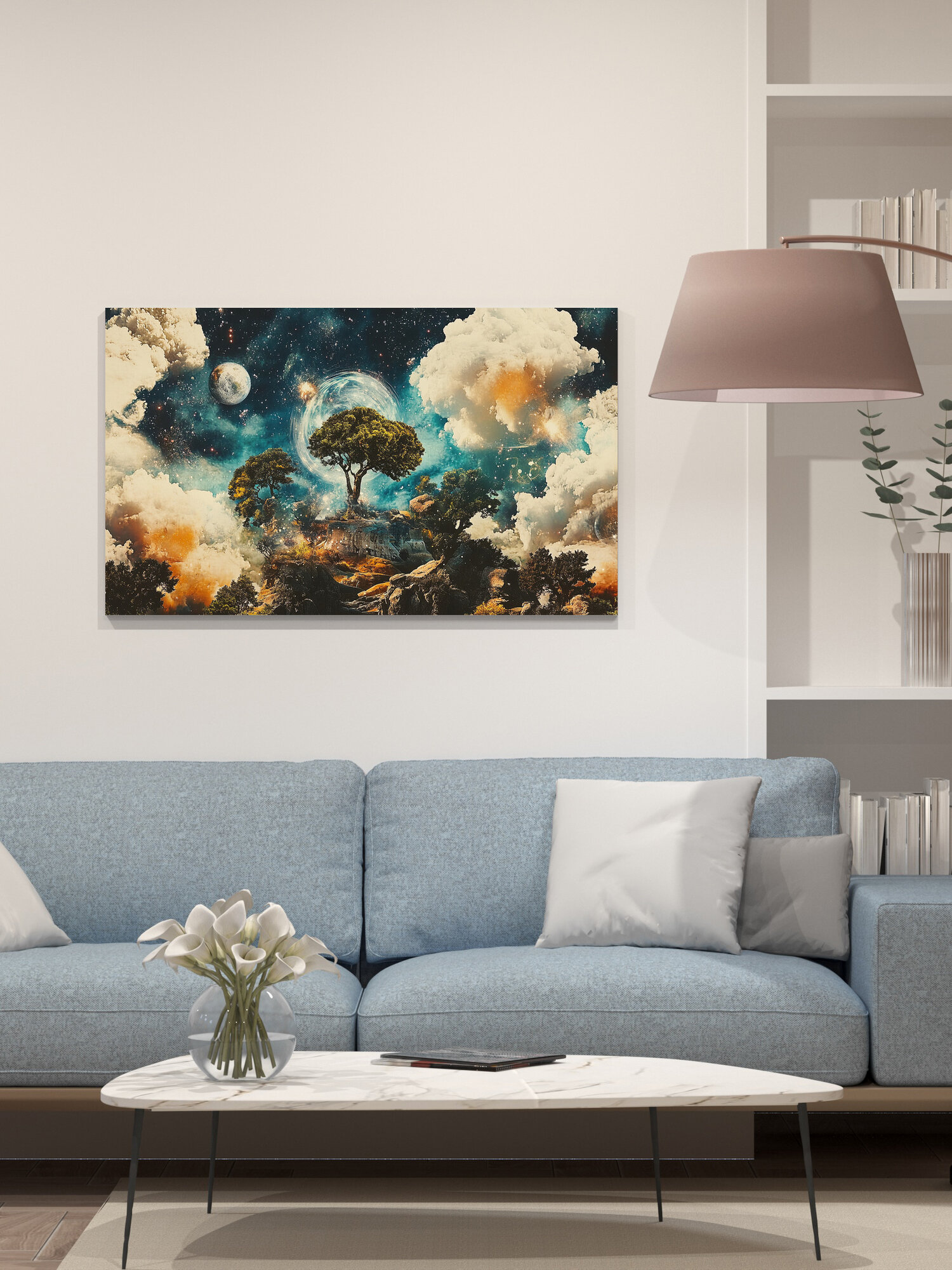 Купить Картина на холсте интерьерная 100х60 см, Игил, земля, небо, природные элементы, космические образы, гармония с доставкой по всей России.