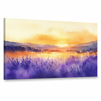 Купить Картина на холсте интерьерная 100х60 см, лаванда, поле, закат, фиолетовые оттенки, золотистое небо, нежные мазки кисти с доставкой по всей России.