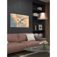 Картина на холсте интерьерная 100х60 см, Пегас, крылатый конь, воздушная картина, утреннее небо, розовый оттенок: сравнение цен, характеристики, фото, актуальное наличие и цены.