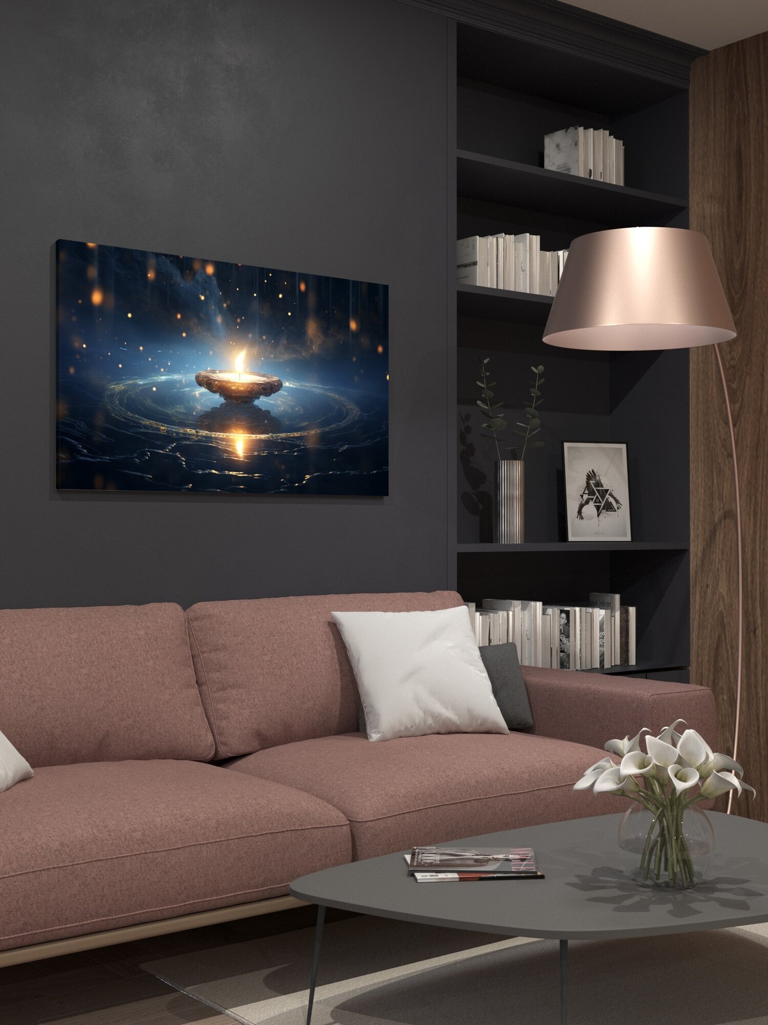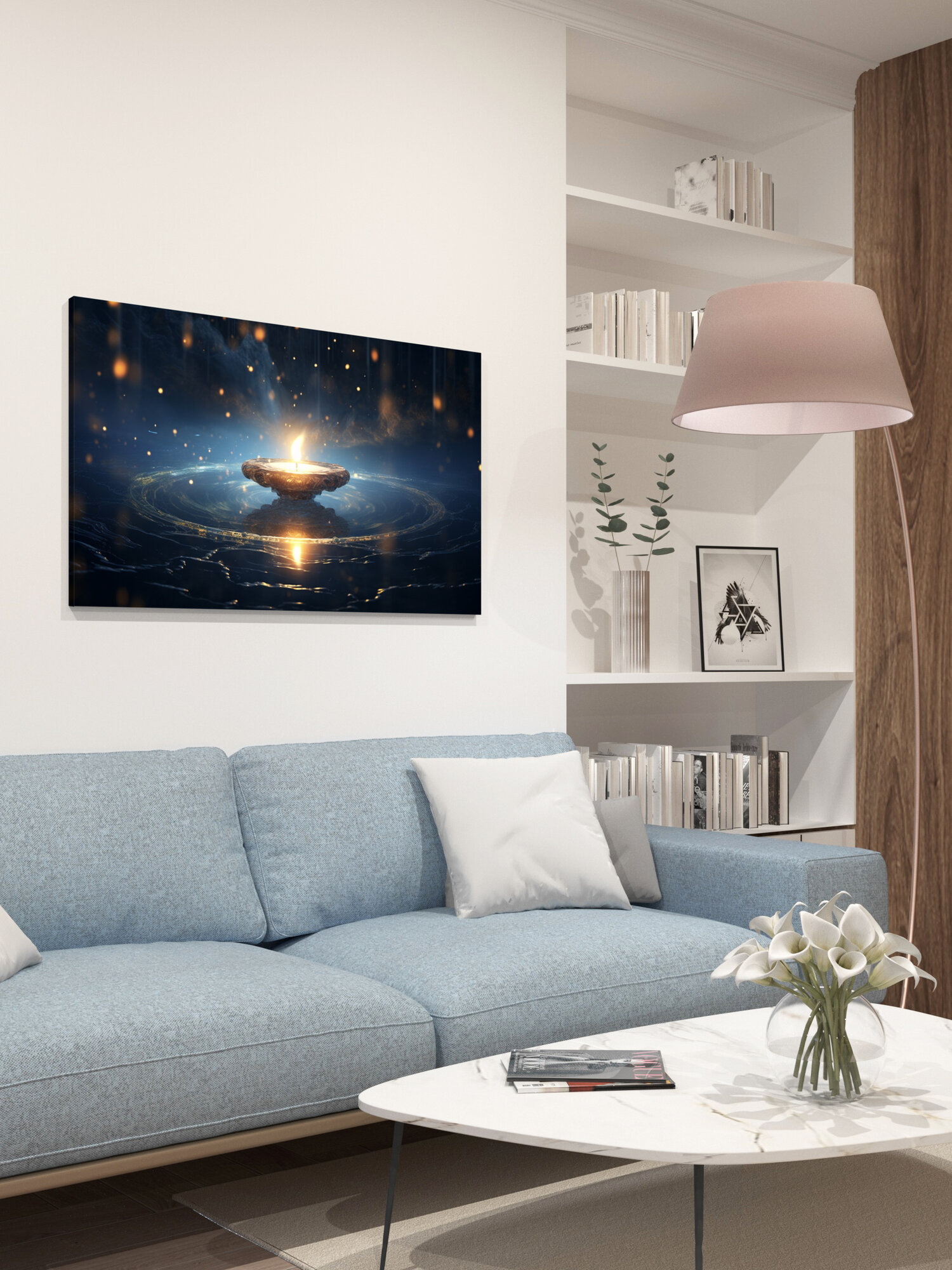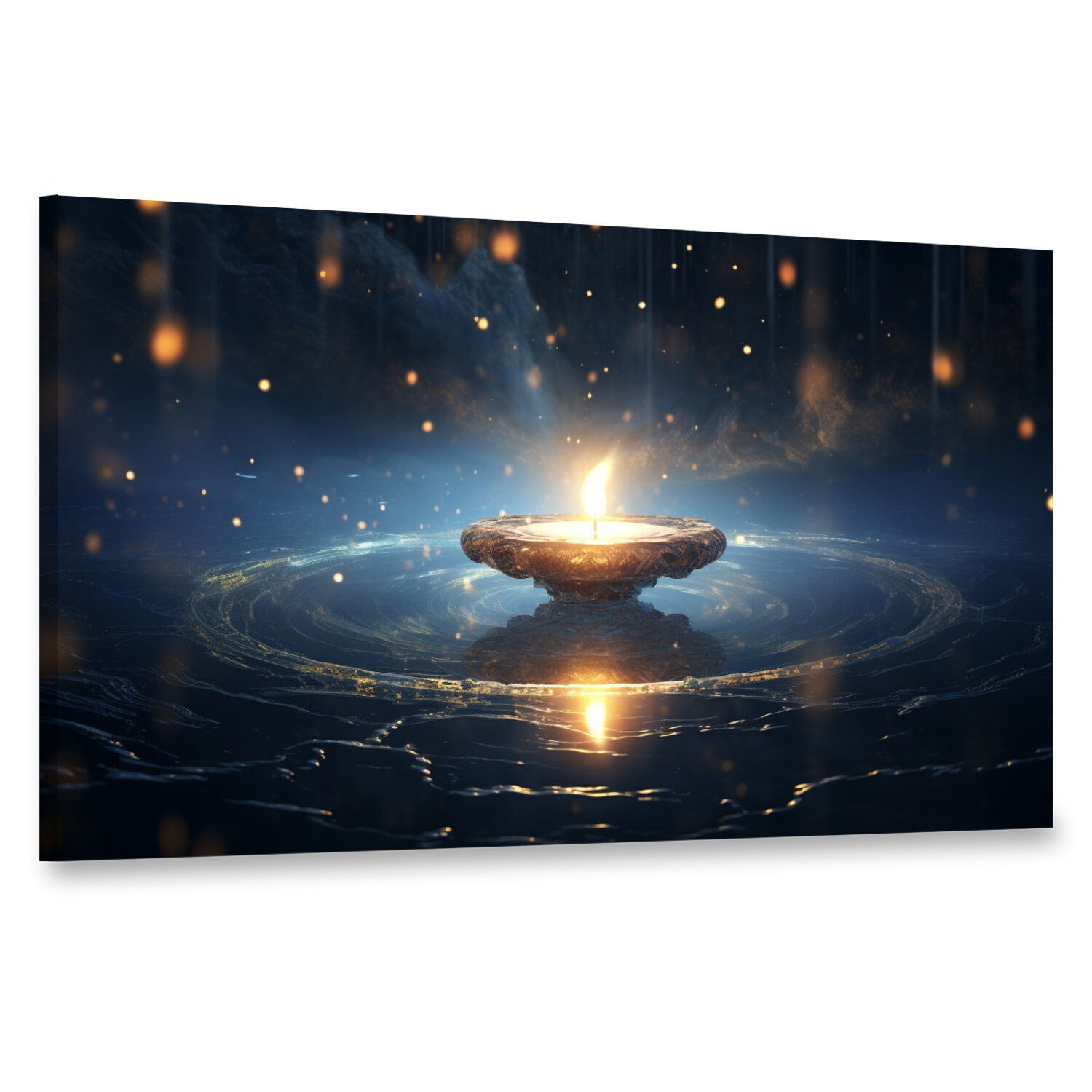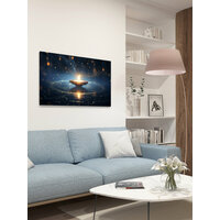 Купить Картина на холсте интерьерная 100х60 см, цифровое произведение иск, парящая свеча, мерцающий ореол света, ночное небо с доставкой по всей России.