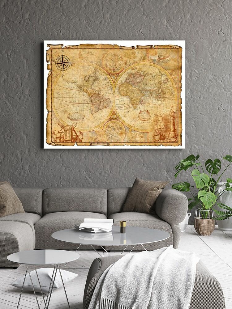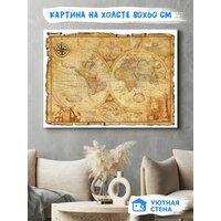 Картина на натуральном холсте Уютная стена «Старая карта с рваными краями» 80х60 см: сравнение цен, характеристики, фото, актуальное наличие и цены.