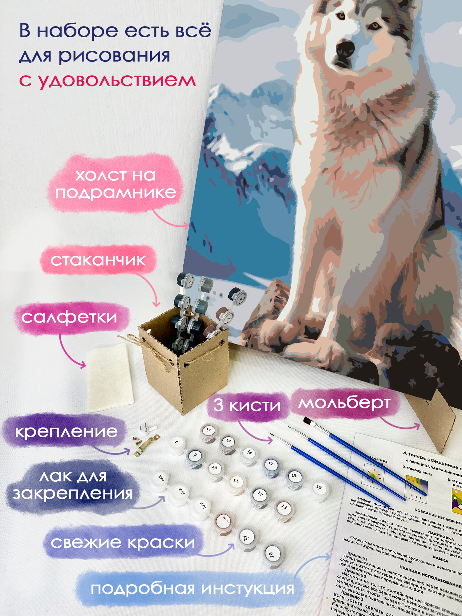 Купить Картина по номерам 40×50 см, стойкая хаски, заснеженные горы, арктическая порода собак, суровая красота, жизнестойкость с доставкой по всей России.