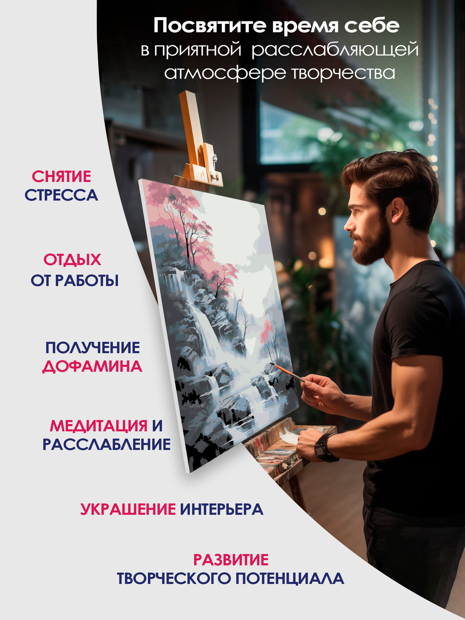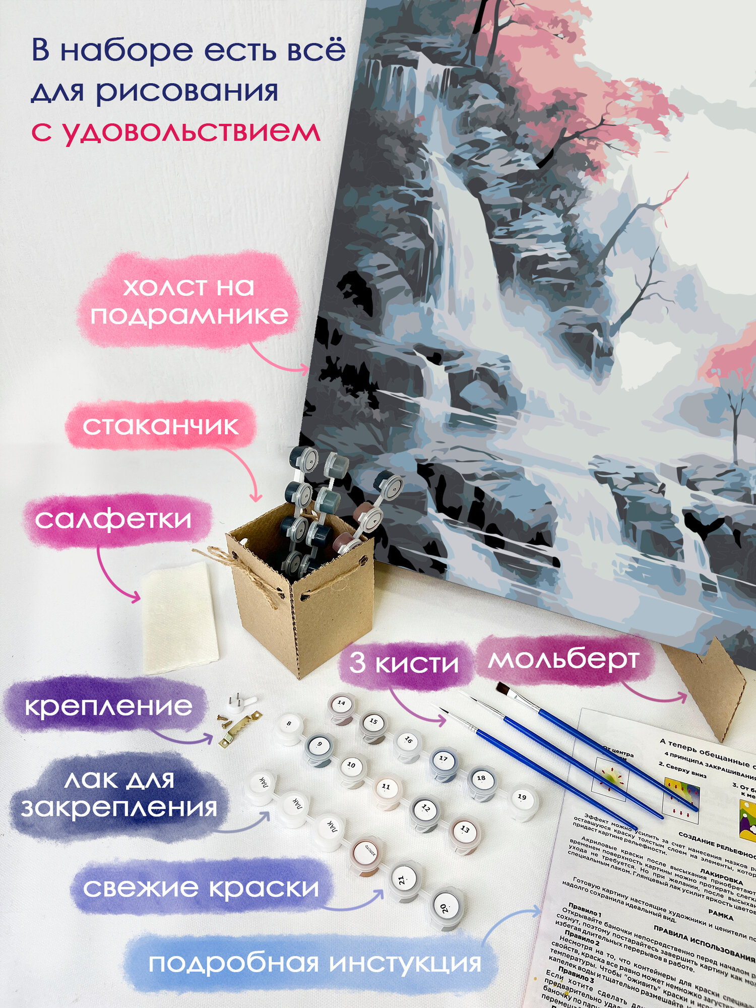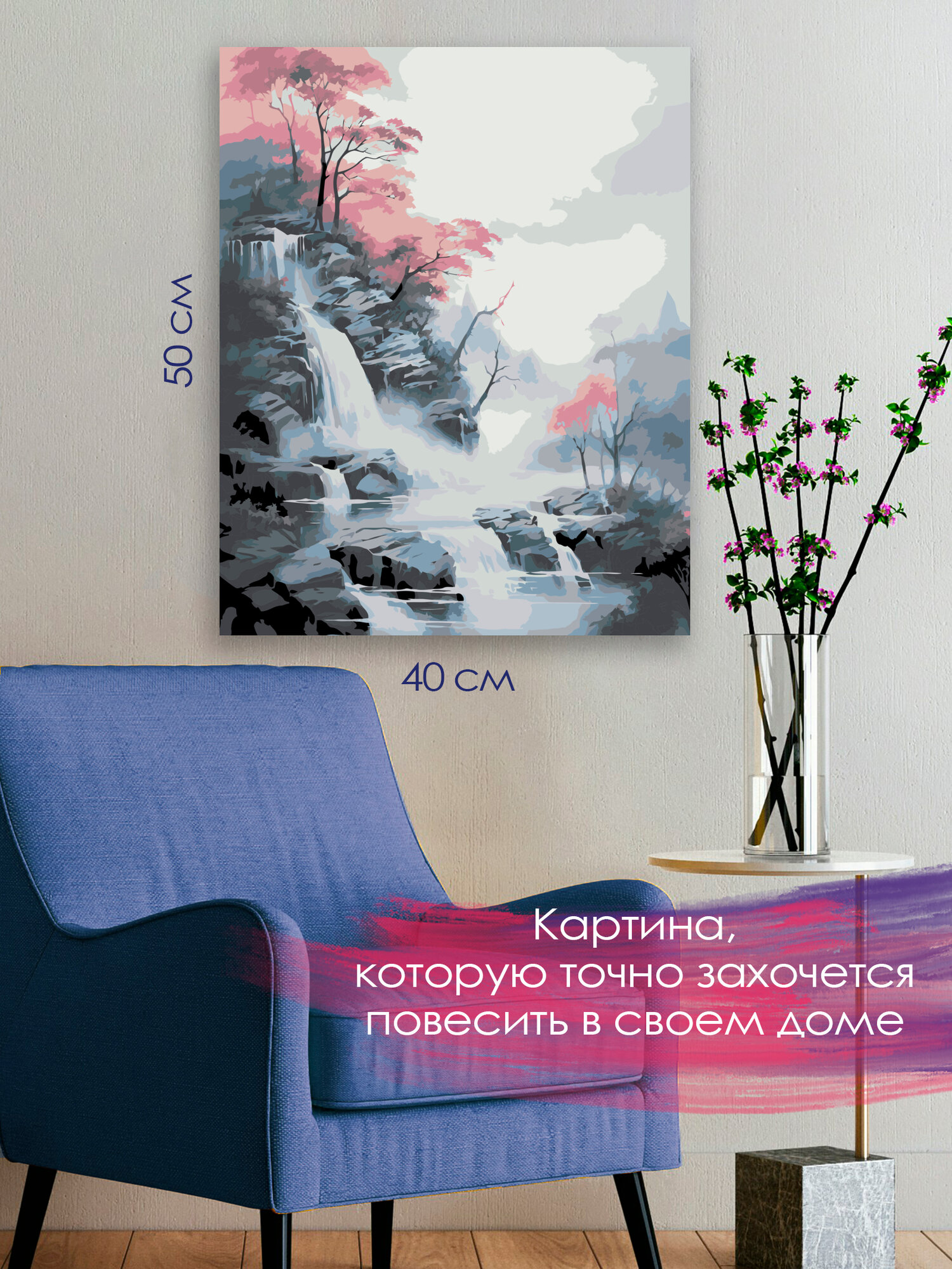 Картина по номерам 40×50 см, водопад, акварельная работа, сумеречное небо, нежные мазки кисти, спокойствие, красота: сравнение цен, характеристики, фото, актуальное наличие и цены.