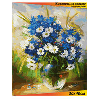 Картина по номерам Белоснежка "Ромашки и васильки" / Раскраска / Холст на подрамнике 30х40 см. / Цветы / Натюрморт