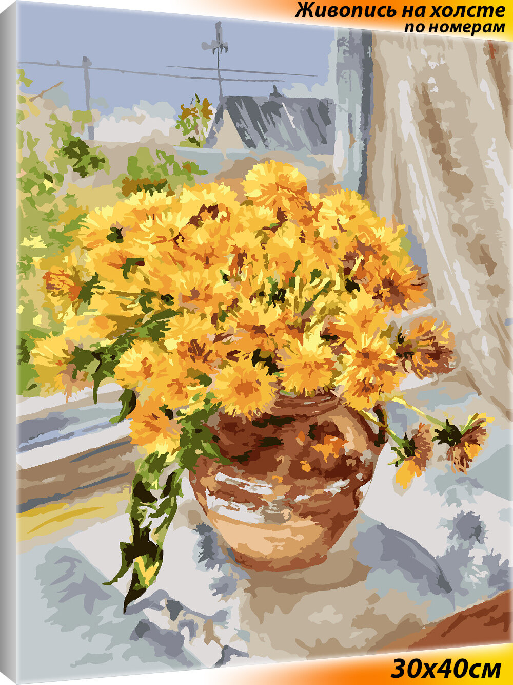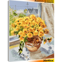 Картина по номерам Белоснежка "В родном доме" / Раскраска / Холст на подрамнике 30x40 см. / Цветы / Ваза / Деревня