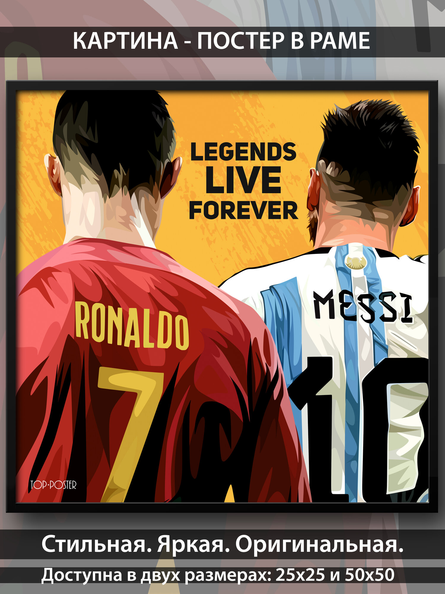Купить Картина постер Лионель Месси и Криштиану Роналду в стиле ПОП-АРТ в рамке с креплением / Футбол / Top Poster 50х50 с доставкой по всей России.