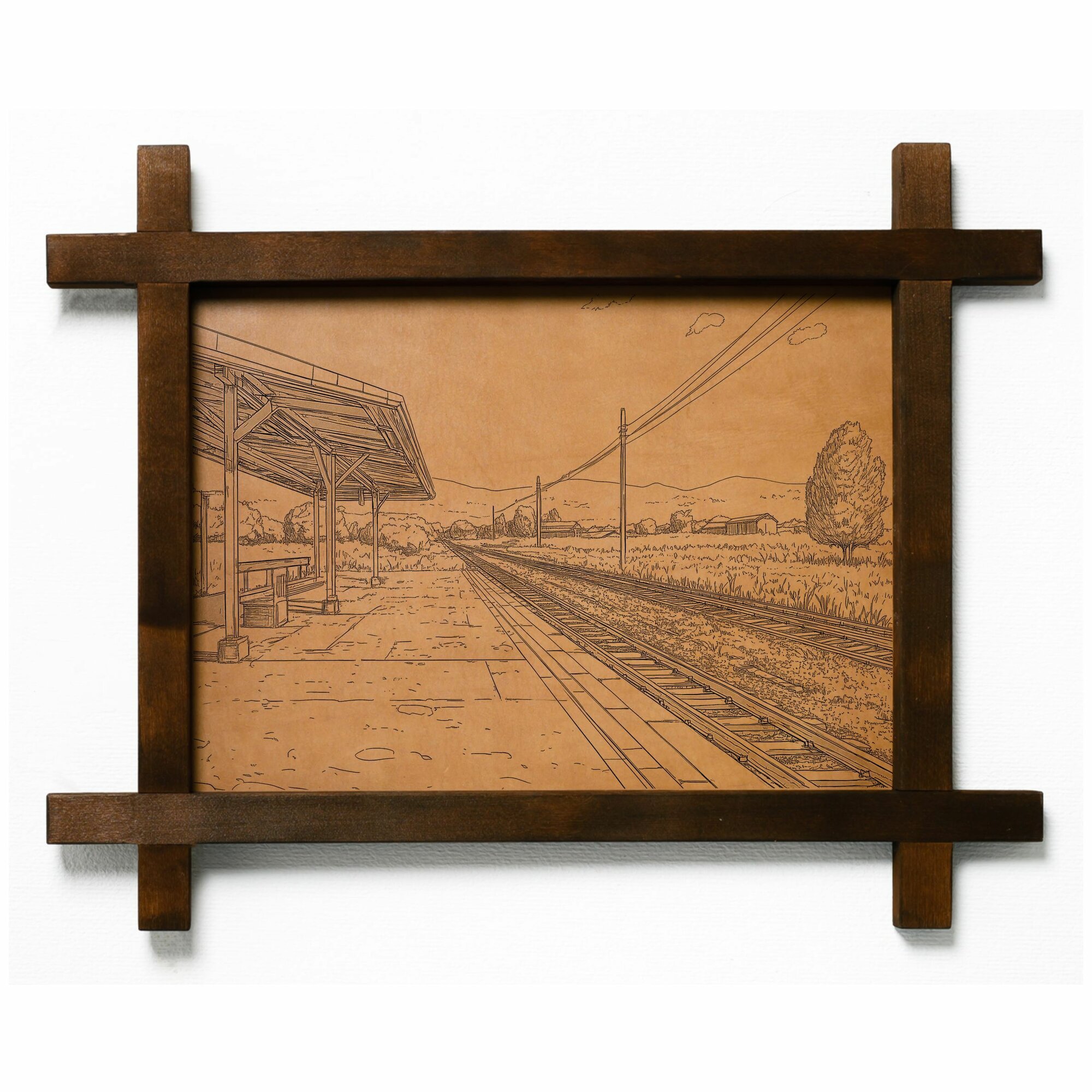 Купить Картина «Станция железной дороги», гравировка на натуральной коже, интерьерная для украшения и декора на стену в деревянной раме, подарок, BoomGift с доставкой по всей России. Картина «Станция железной дороги», гравировка на натуральной коже, интерьерная для украшения и декора на стену в деревянной раме, подарок, BoomGift: сравнение цен, характеристики, фото, актуальное наличие и цены.