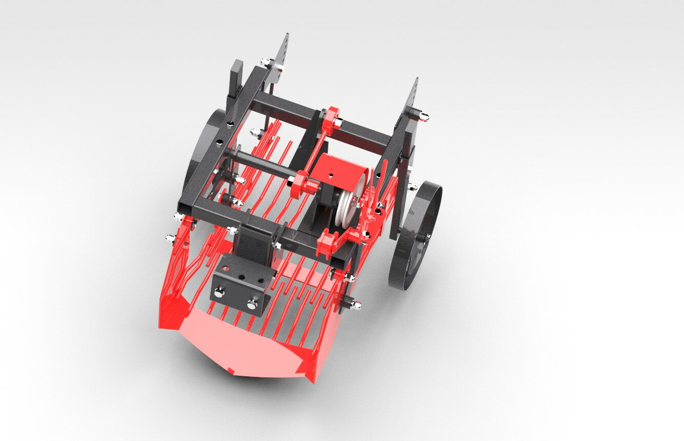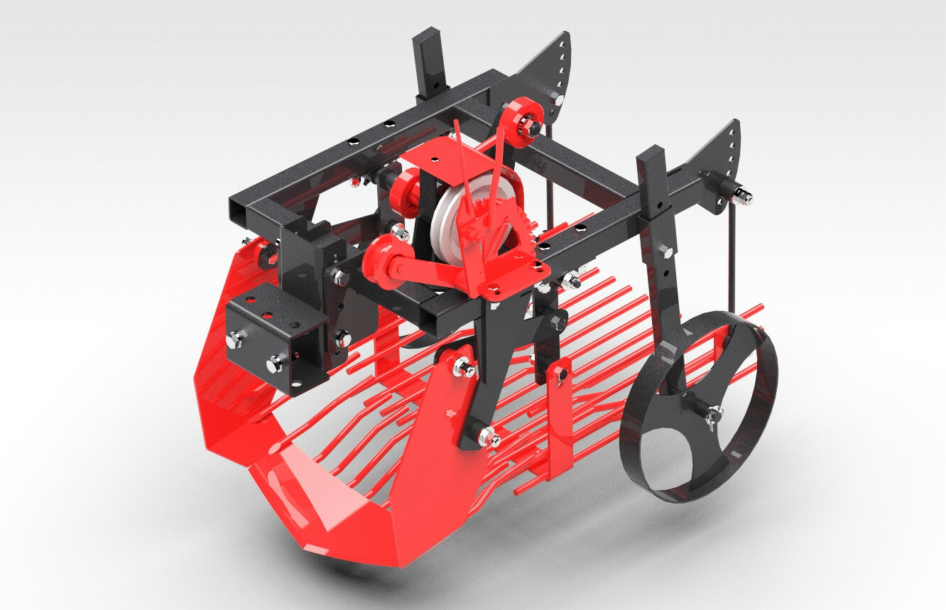Картофелекопалка для мотоблока предназначена для механизированного выкапывания клубней картофеля из земли, укладывания на поверхность для дальнейшего ручного собирания. Кроме этого механизм можно использовать для собирания лука, свеклы, чеснока. Модуль состоит из активного лемеха (ножа) и просевной решетки (грохота). Возможно регулирование глубины выкапывания с помощью опорных колес, мягкость сепарации грунта регулируется с помощью оборотов двигателя мотоблока. Агрегатируется с мотоблоками типа Салют, Агат. Картофелекопалка ККМ-1 предназначена для работы на легких и средних почвах при влажности не более 27%, засоренных камнями до 8-9 т/га, при твердости почвы до 20 кг/см2. Сдвоенный шкив в комплект поставки не входит и приобретается отдельно.