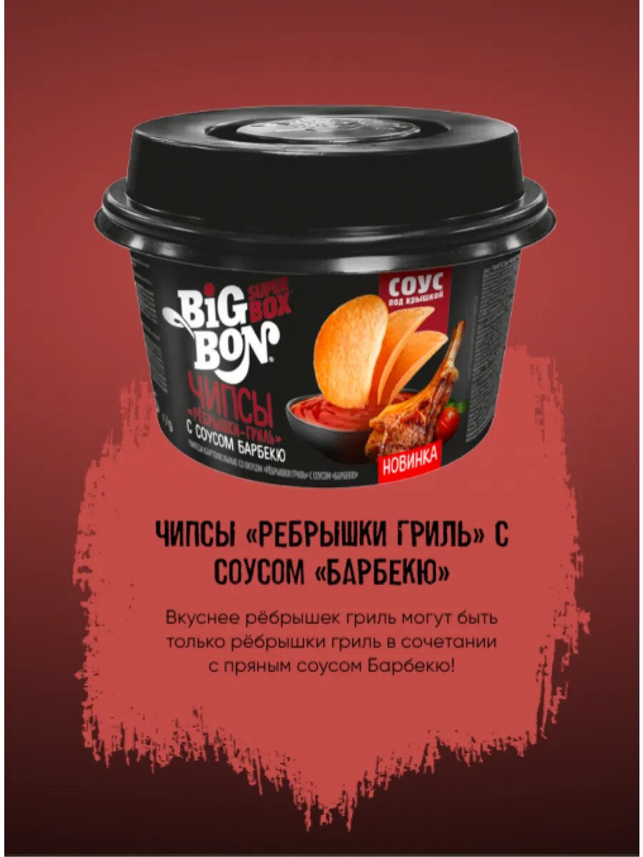 | Состав | Чипсы картофельные: картофельные хлопья картофель, эмульгатор Е471, стабилизатор Е450, антиокислители Е304, е223, краситель куркумин, регулятор кислотности лимонная кислота, мука пшеничная, масло растительное, крахмал кукурузный, крахмал картофельный, соль йодированная соль, йодат калия, агент антислеживающий Е536, эмульгатор Е471, антиокислитель экстракт розмарина, комплексная пищевая добавка Ребрышки гриль мальтодекстрин, соль, сахар, усилители вкуса и аромата Е621, е635, ароматизаторы, сыворотка молочная сухая, заменитель сухих сливок на растительной основе глюкозный сироп, масло растительное, эмульгаторы Е471, е481, стабилизаторы Е340, е452, молочный белок, агент антислеживающий Е551, лук репчатый сушеный, регулятор кислотности лимонная кислота, олеин пальмовый, томаты сушеные, красители Е172, экстракт паприки, агент антислеживающий Е551; соус вода питьевая, сахар, томатная паста томаты, регулятор кислотности уксусная кислота, крахмал кукурузный, соль, овощи сушеные лук репчатый, чеснок, пряности паприка, перец черный, ароматизатор содержит сульфиты, глютен, краситель Е150d, консерванты Е202, е211. |