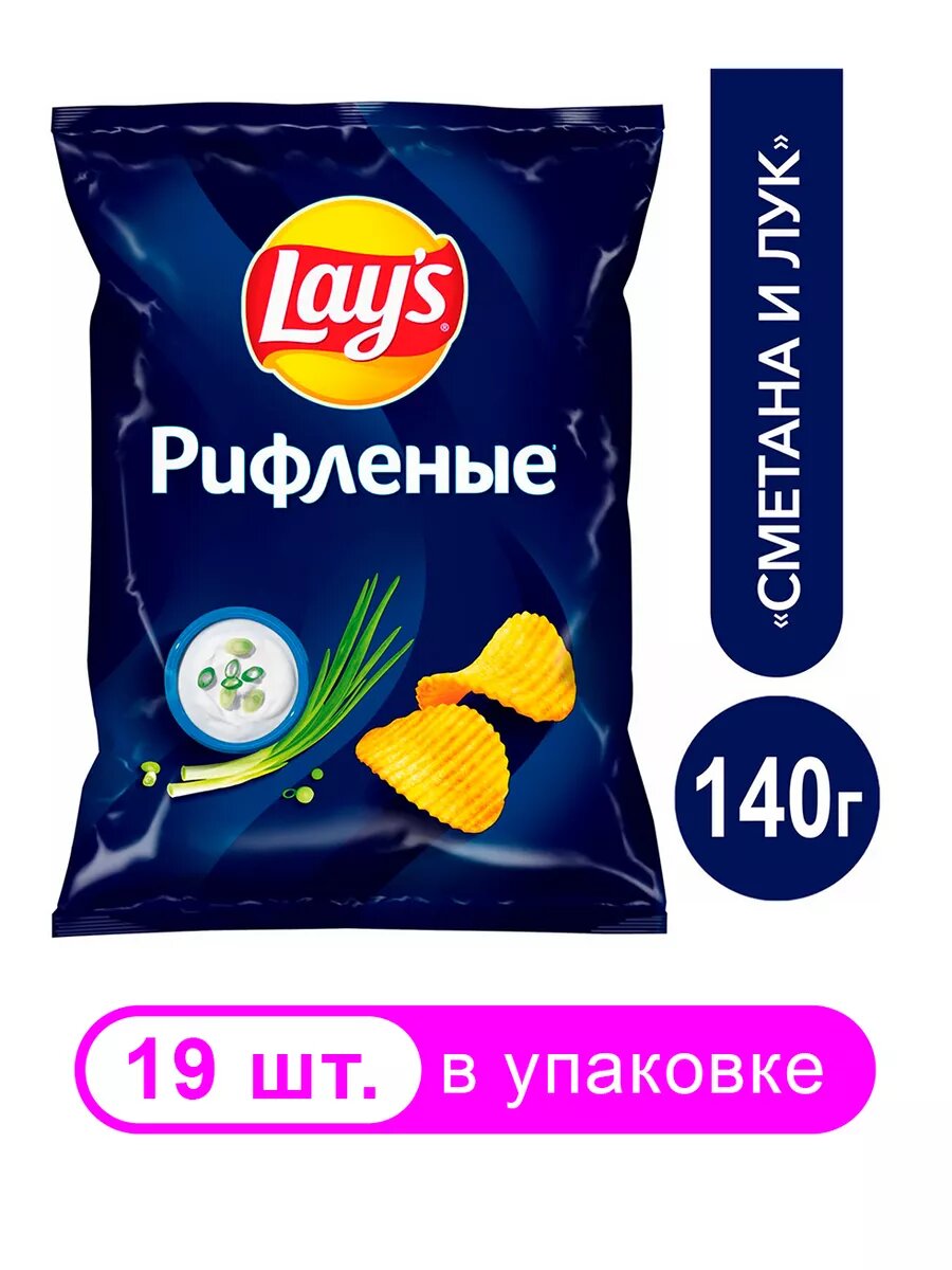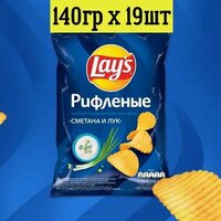 Картофельные чипсы Лейс Lays рифленые со вкусом сметаны и лука, 19 шт по 140 г: сравнение цен, характеристики, фото, актуальное наличие и цены.