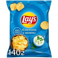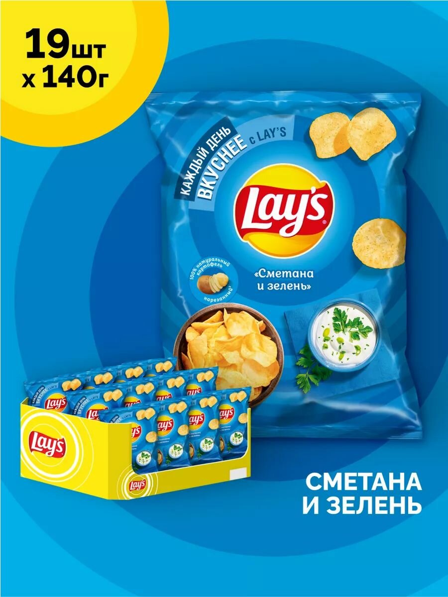 Чипсы картофельные Lay’s Сметана и зелень, 19 упаковок по 140г: сравнение цен, характеристики, фото, актуальное наличие и цены.