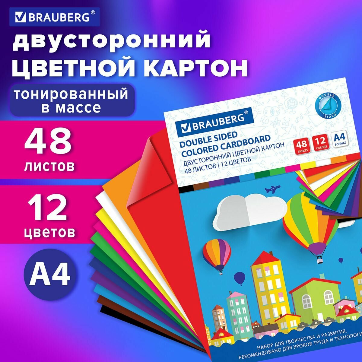 Купить Картон цветной двусторонний Brauberg Kids Series (48 листов, 12 цветов, А4, тонированный, 210х297мм) (124744), 25 уп. с доставкой по всей России.