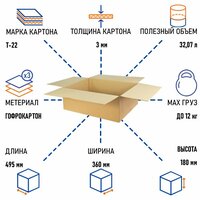 Коробка имеет размеры 495х360х180 мм и вмещает до 32 литров. В комплекте поставки вы получаете 20 коробок, что позволяет оптимально использовать пространство и экономить на упаковке.
